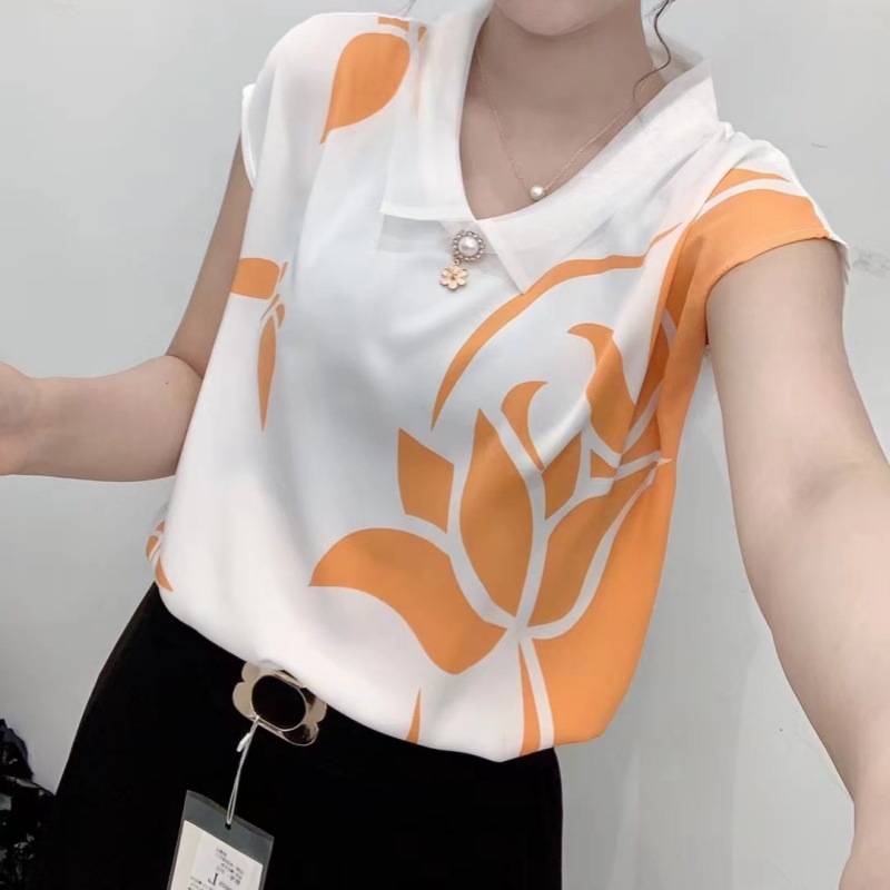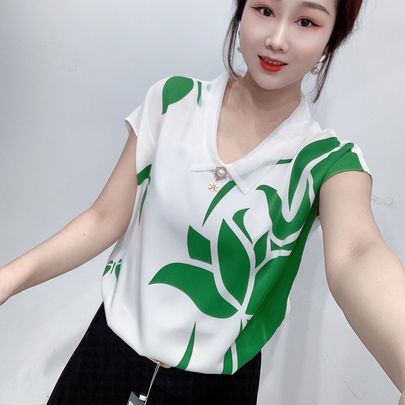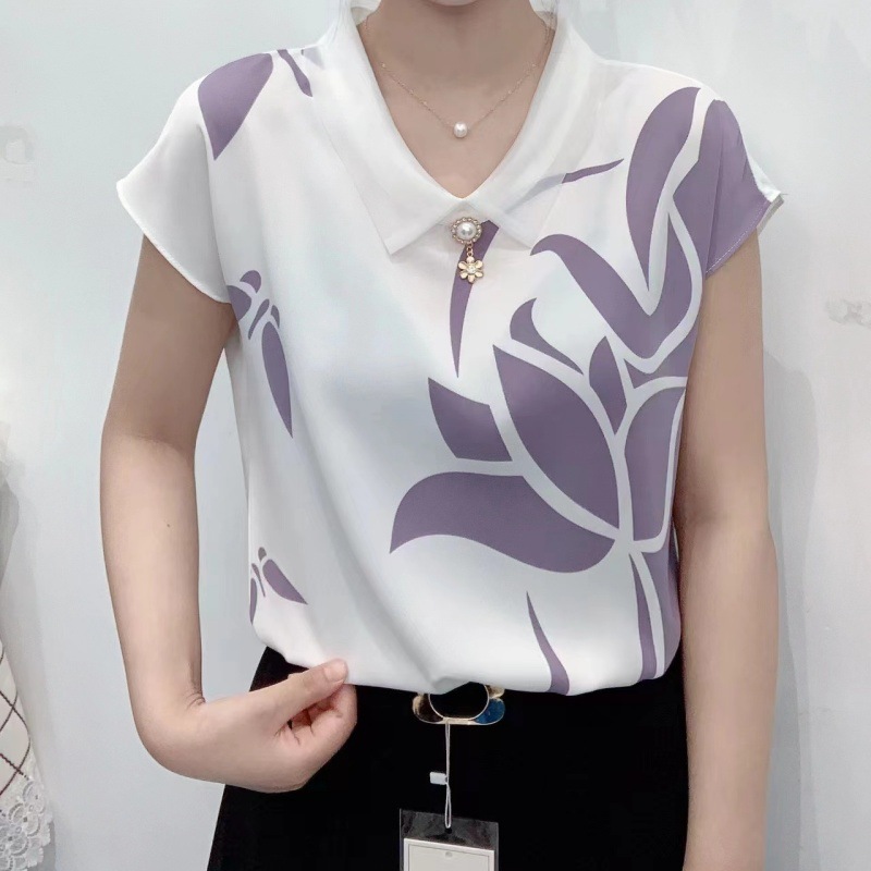여성 패션 새로운 스타일 2025 여름 새 셔츠 슬리밍 탑 디자인 틈새 반팔 셔츠스토어 가기