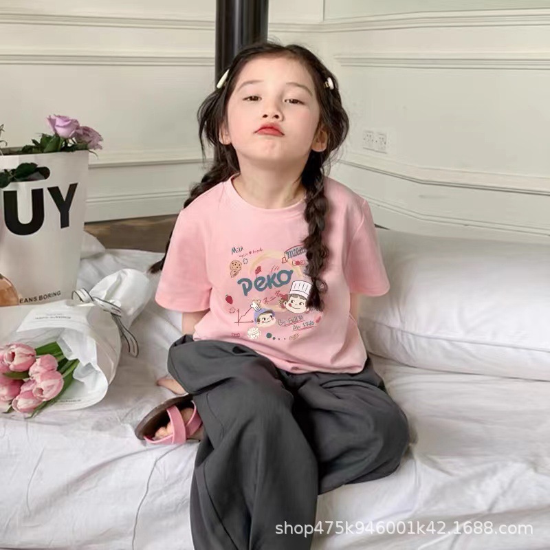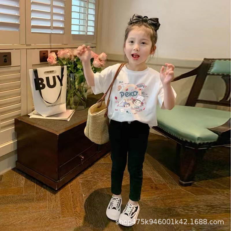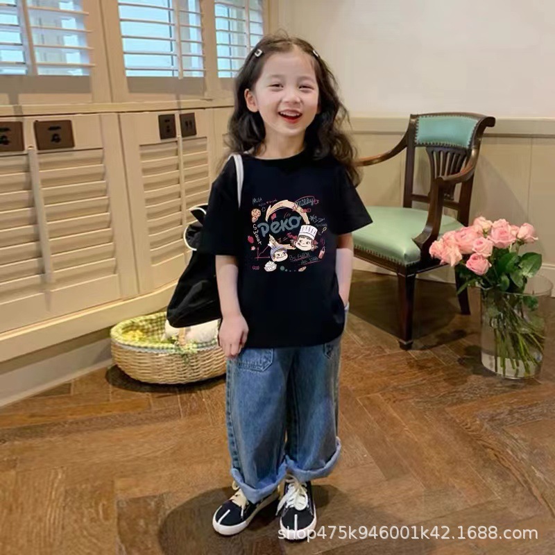 노어 인쇄 반팔 티셔츠 2024 봄과 여름 새로운 도착 여성 흑면 어린이 소녀 반소매 탑스토어 가기