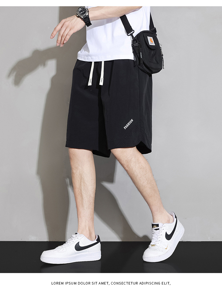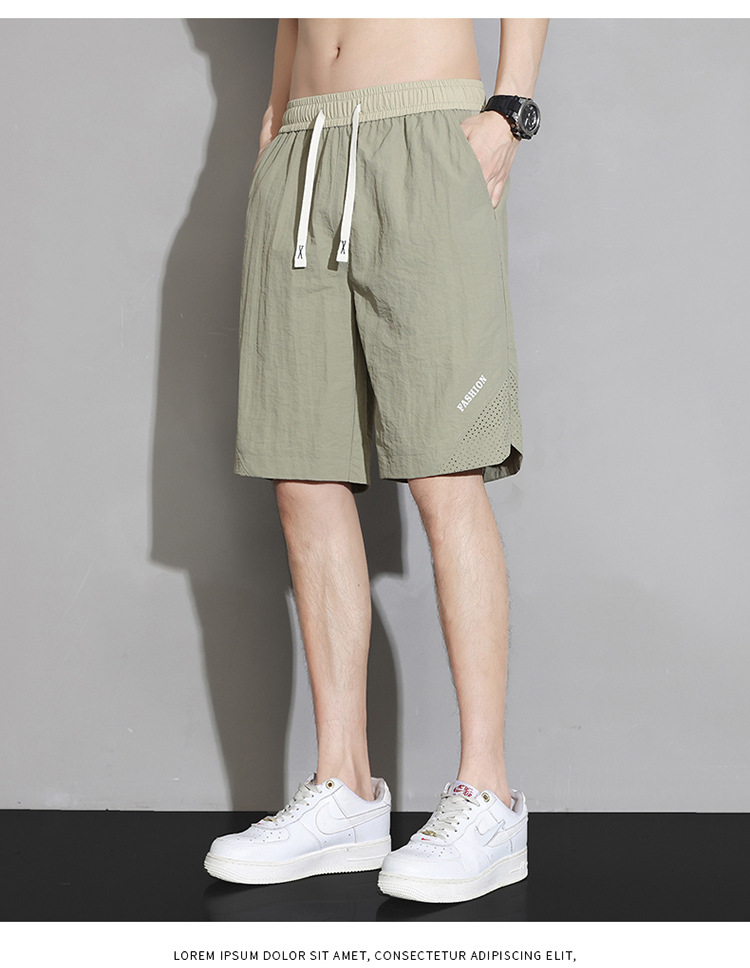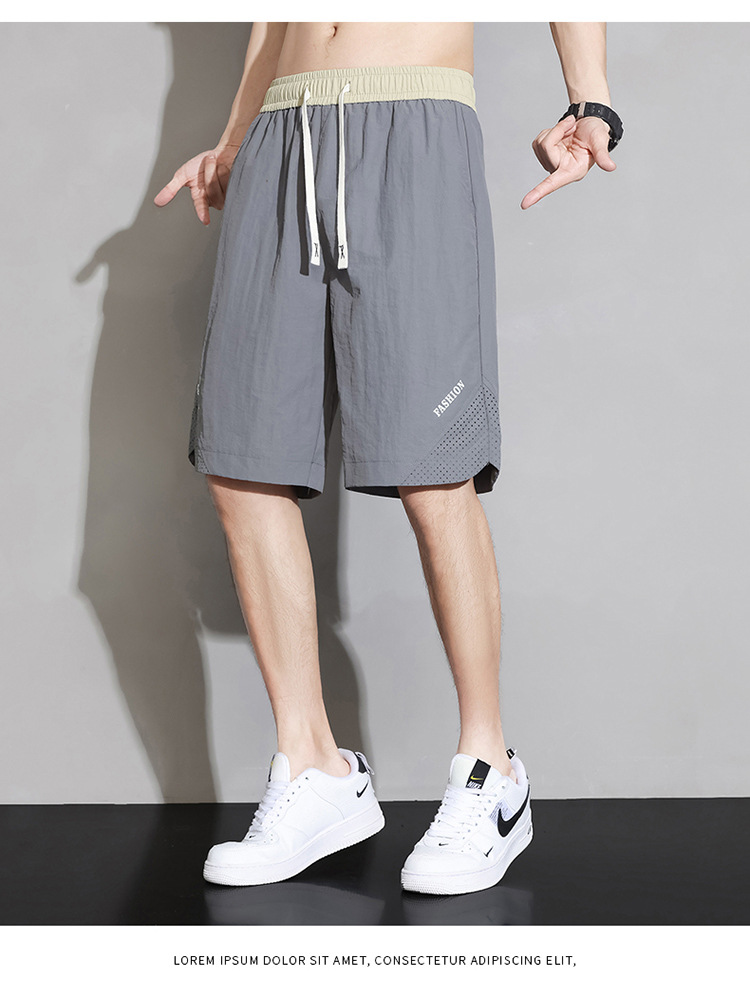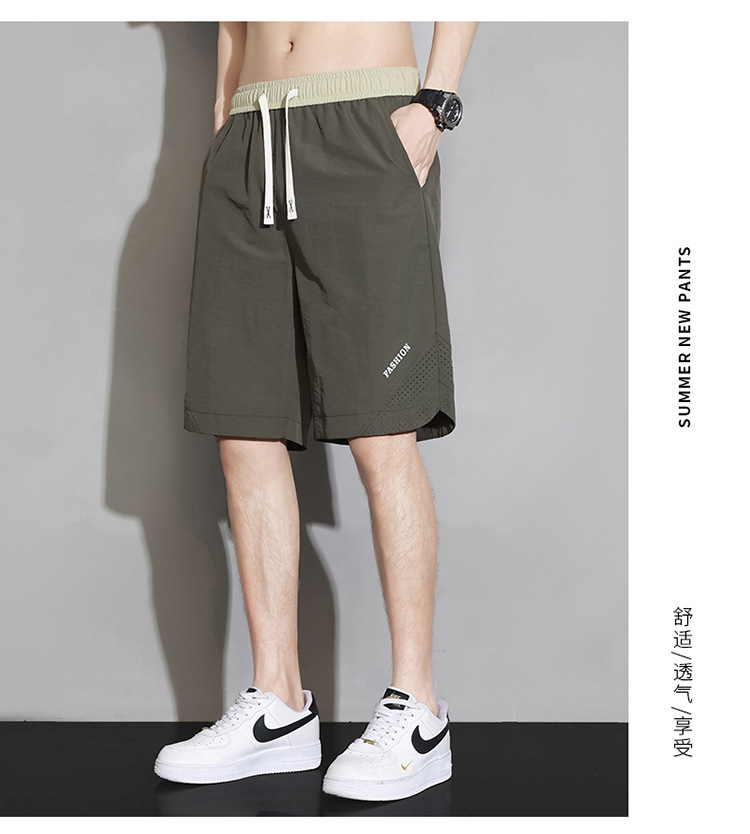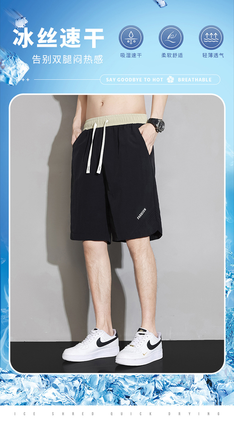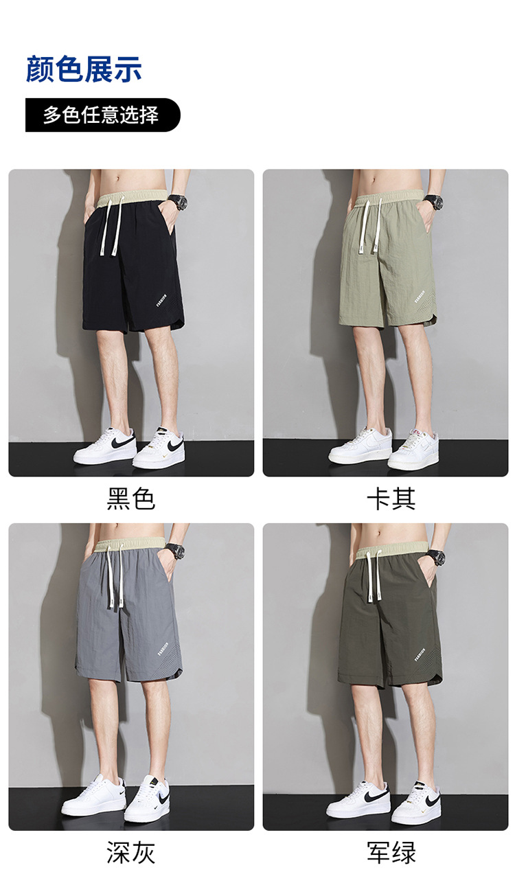 아이스 실크 반바지 남자 여름 얇은 외주 신속 건조 캐주얼 중간 바지 느슨한 여름 스포츠 5 점 바지