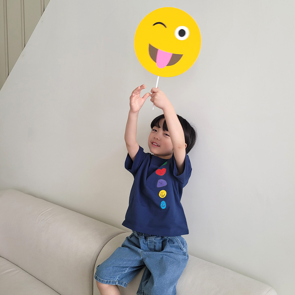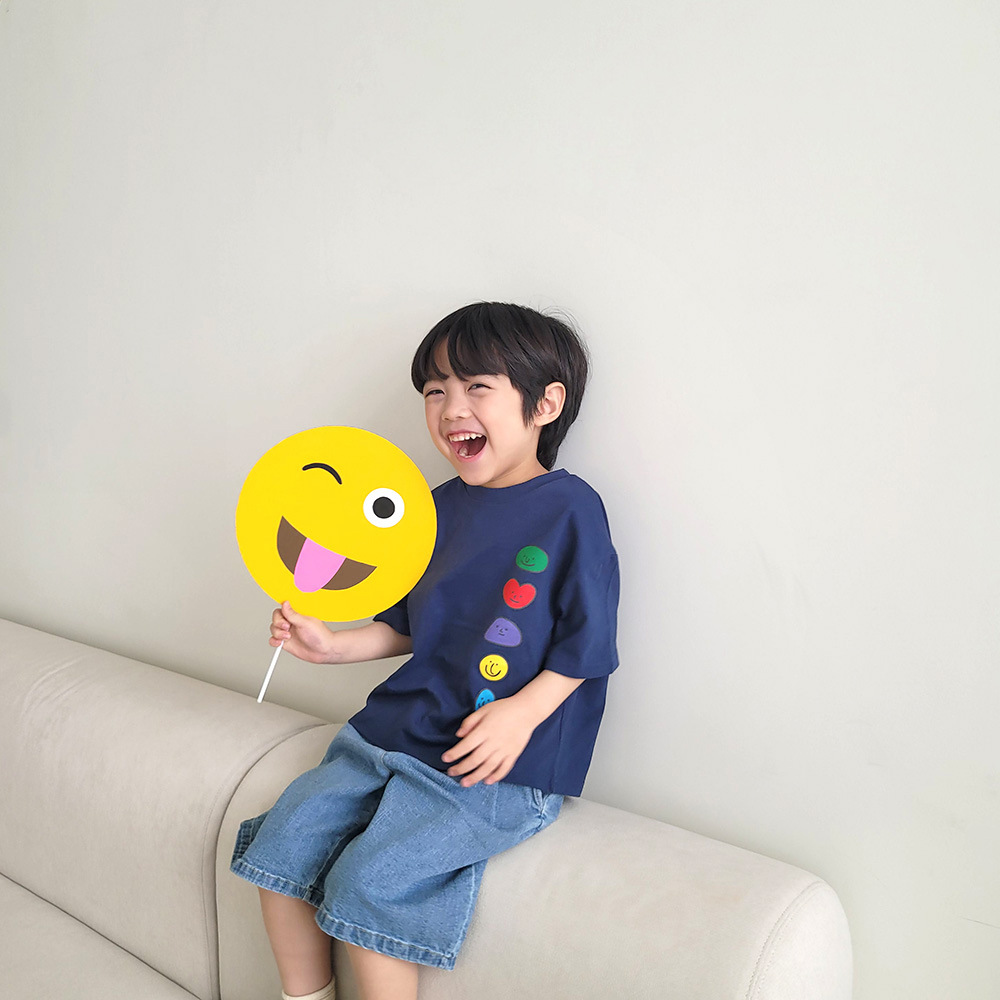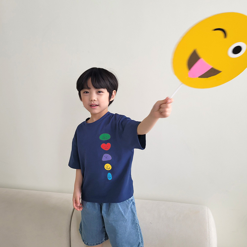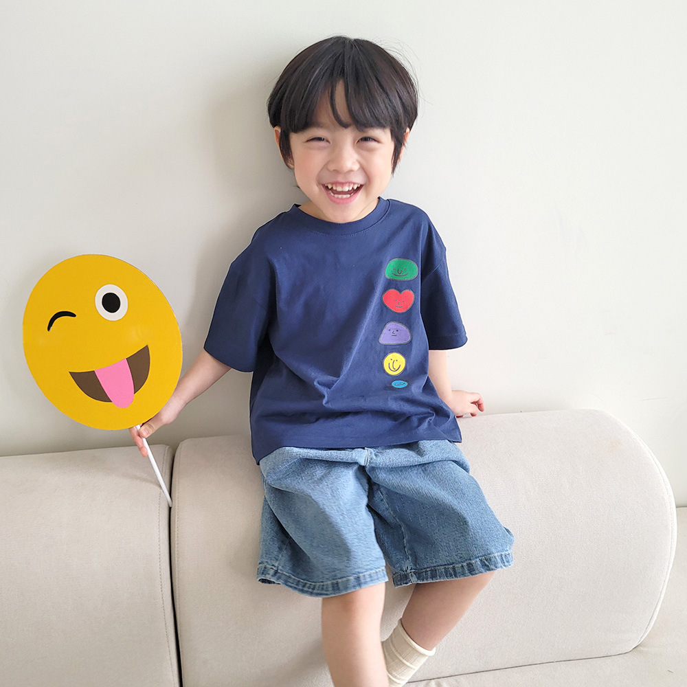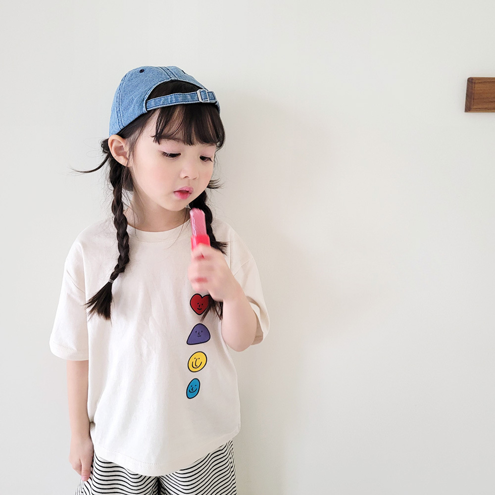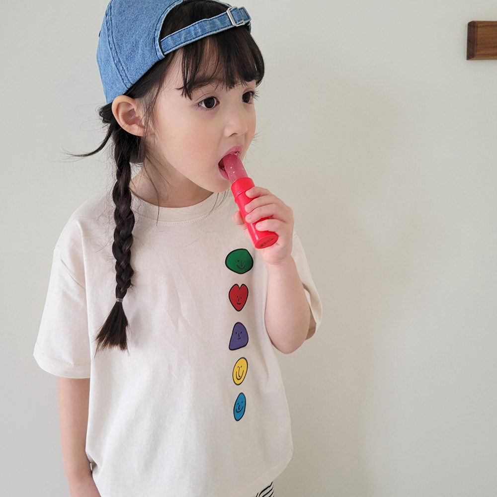 2026년 여름 신상 한국 스타일 남녀 아동용 귀여운 웃는 얼굴 프린트 반팔 티셔츠 얇은 면 아동 상의스토어 가기