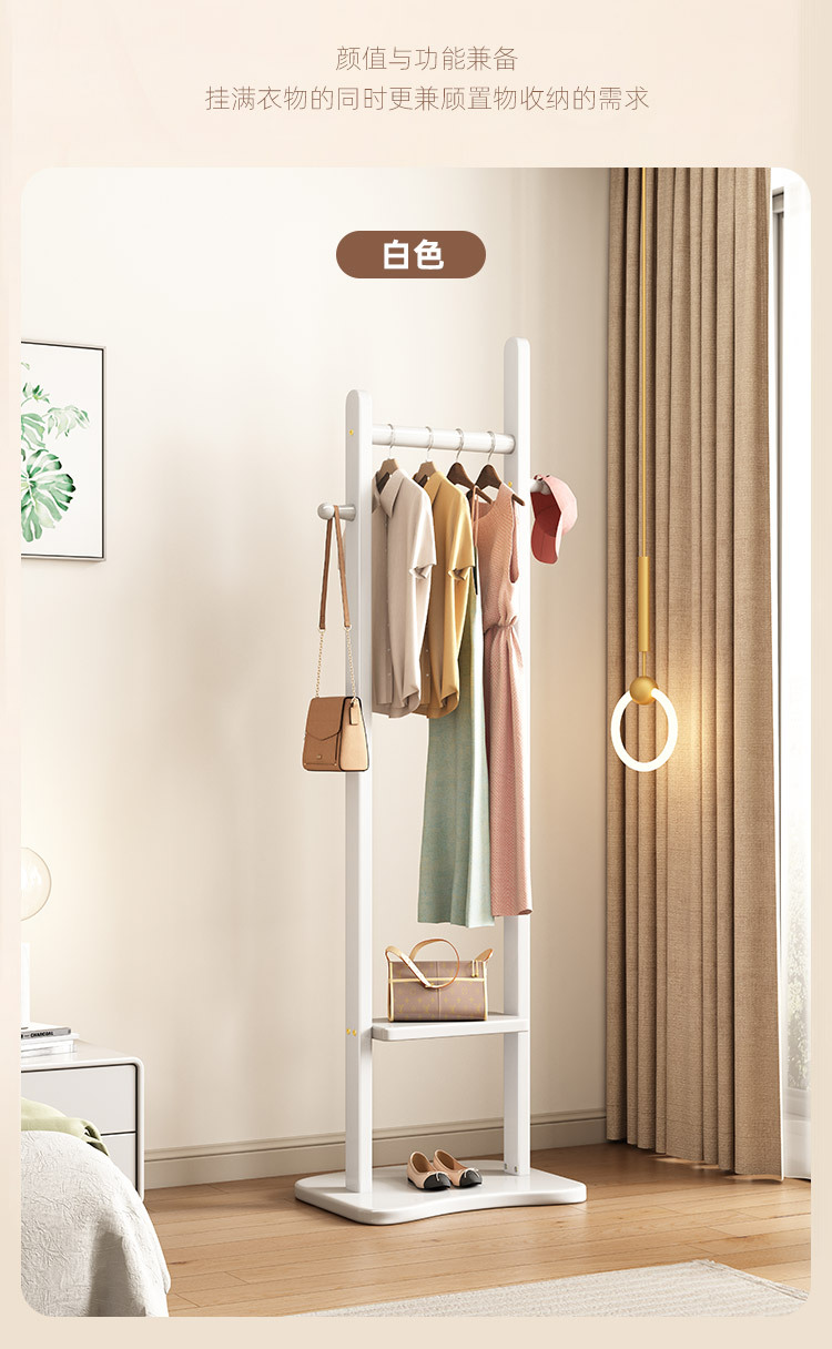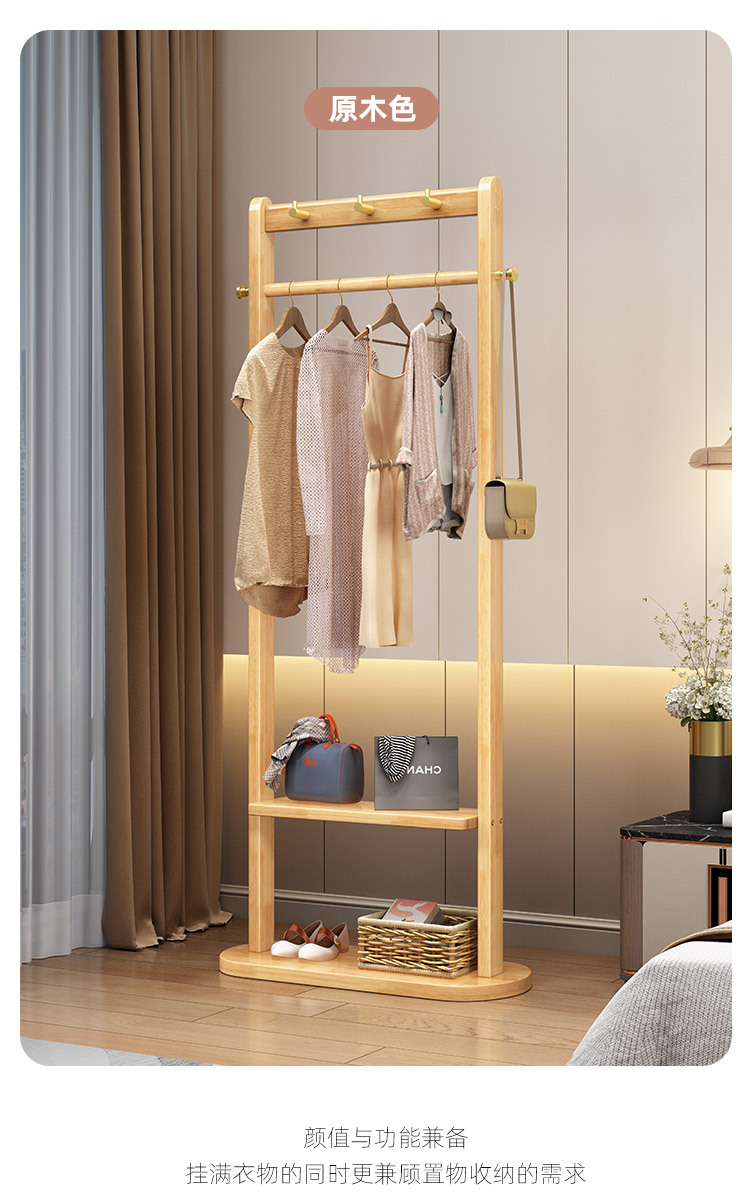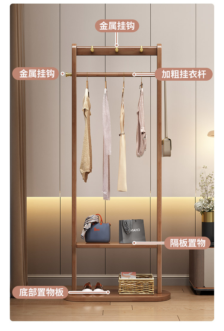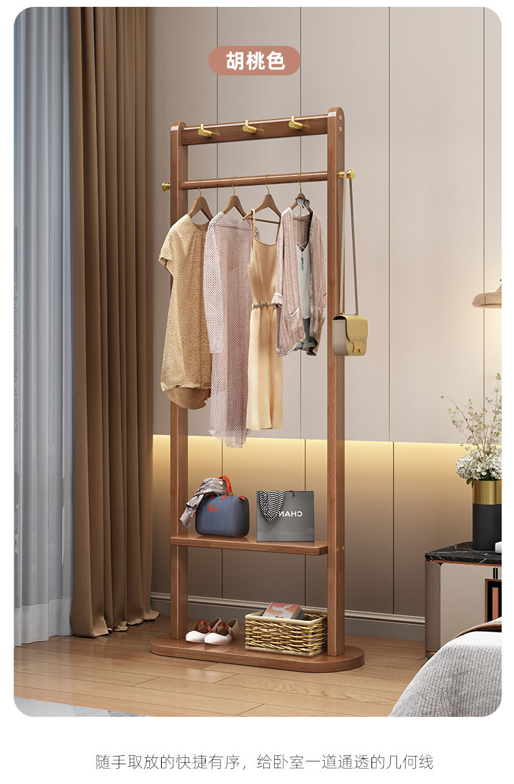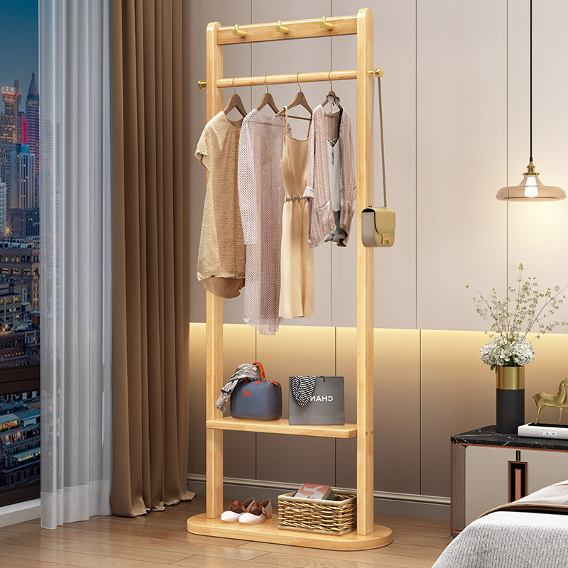 2024 새로운 옷걸이 거실과 침실 전체 단단한 나무 바닥 옷걸이 후크 이동식 스토리지 랙