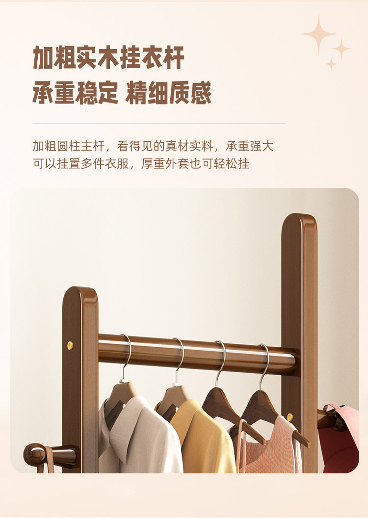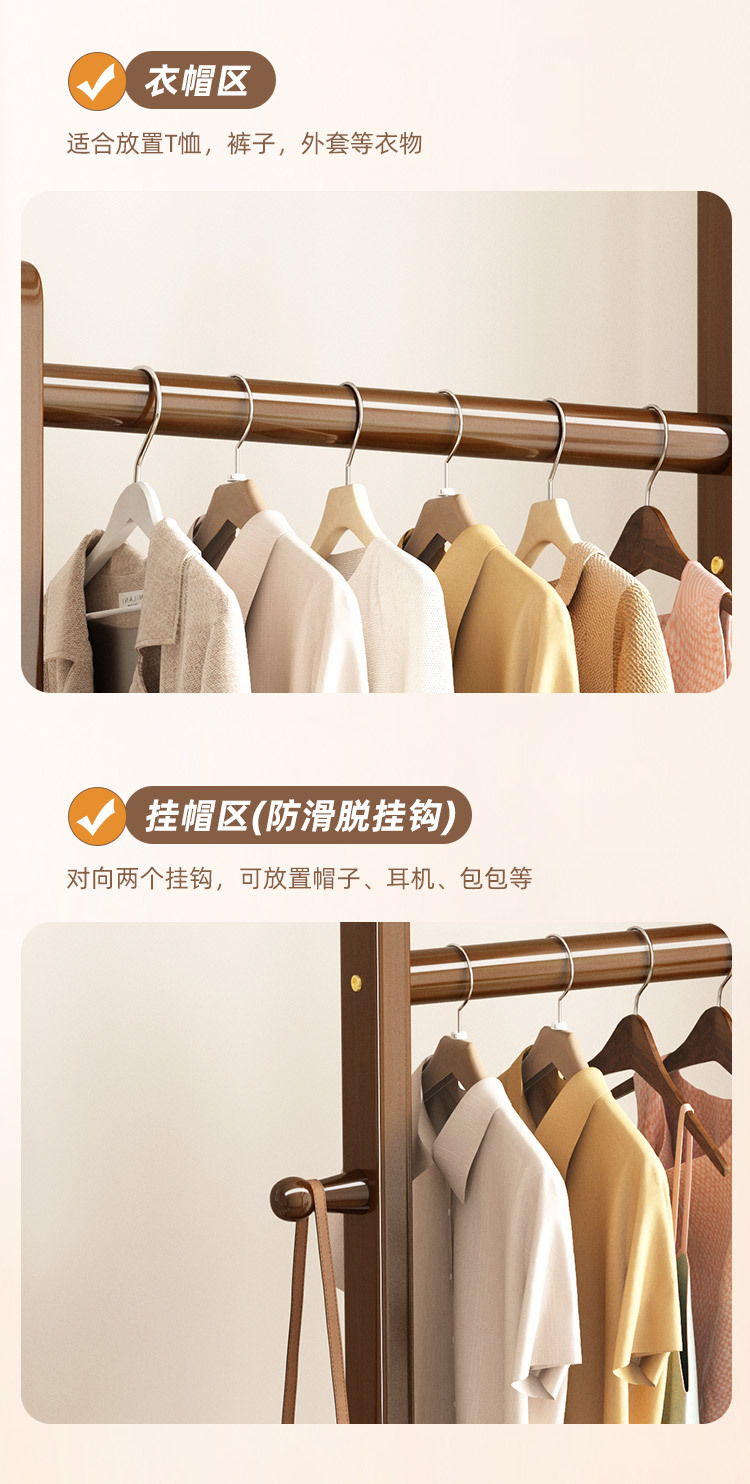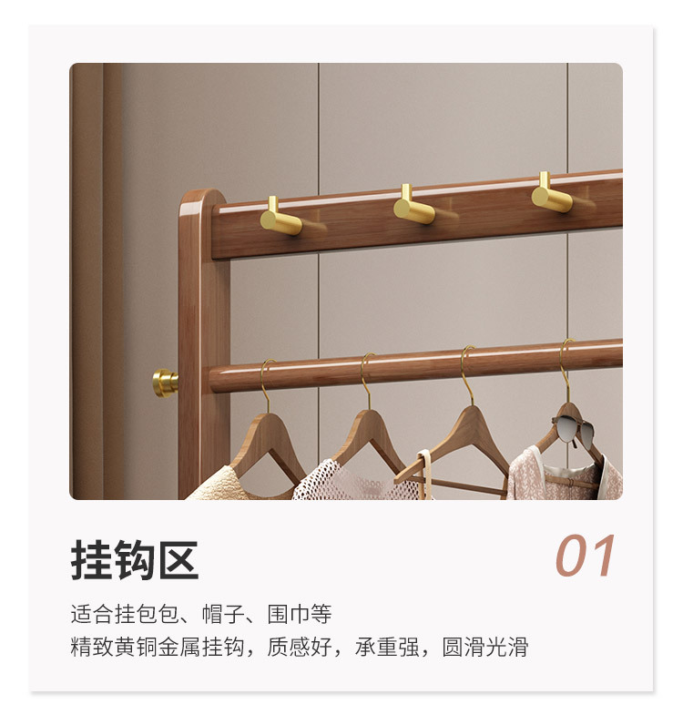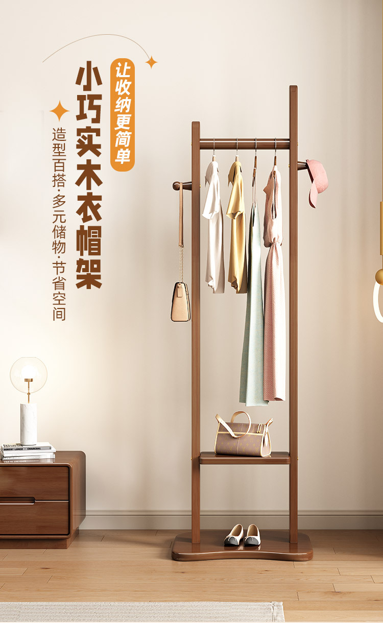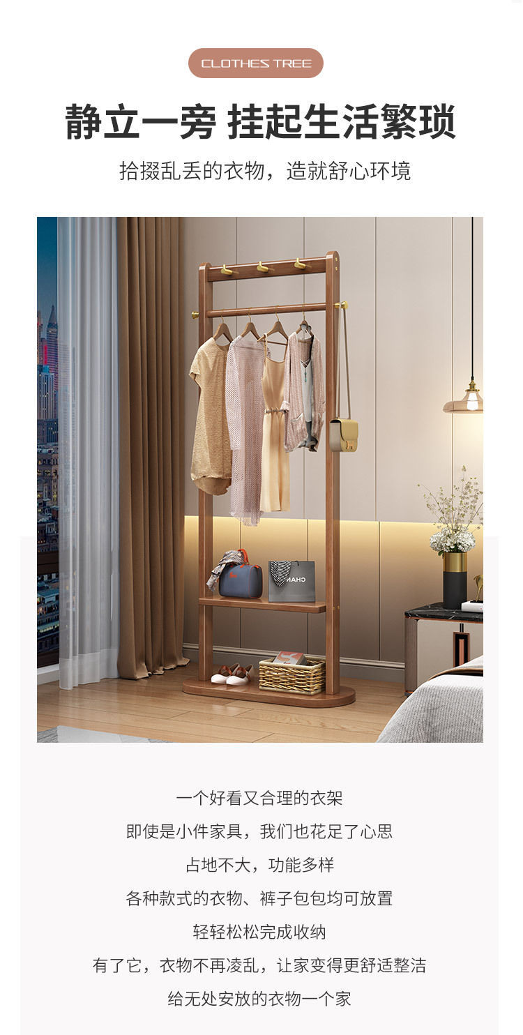 2024 새로운 옷걸이 거실과 침실 전체 단단한 나무 바닥 옷걸이 후크 이동식 스토리지 랙