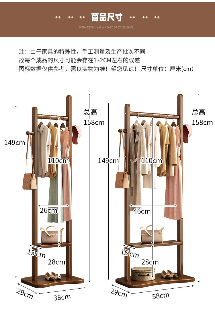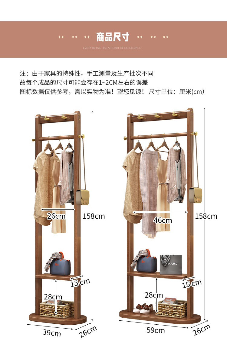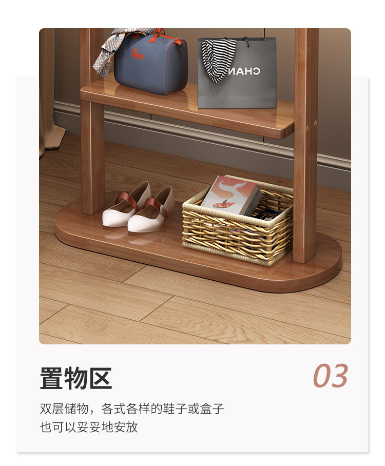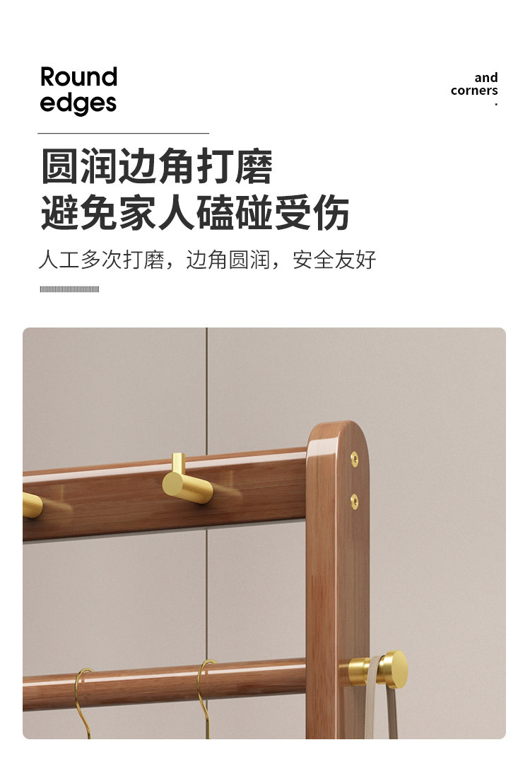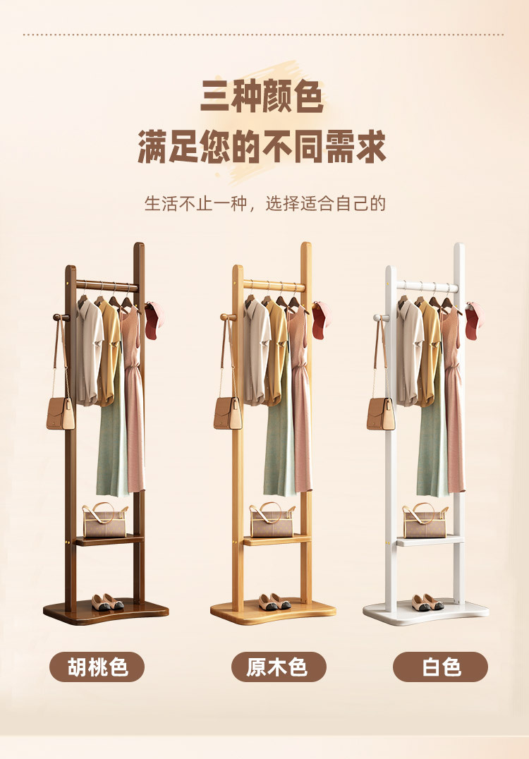 2024 새로운 옷걸이 거실과 침실 전체 단단한 나무 바닥 옷걸이 후크 이동식 스토리지 랙