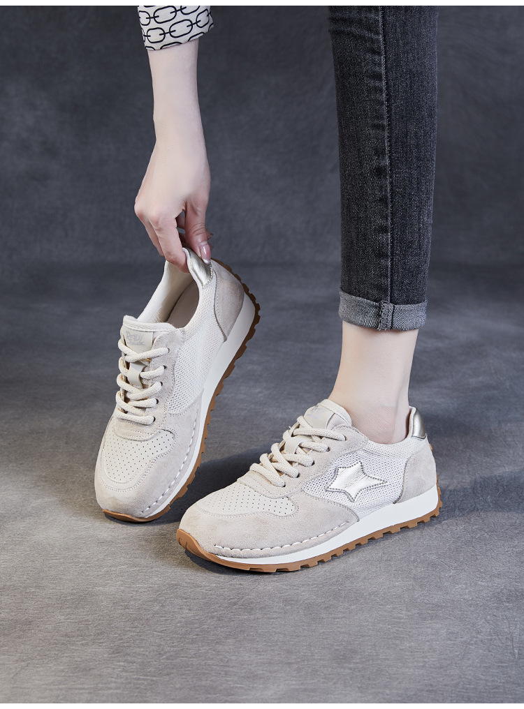 정품 가죽 포레스트 검프 신발 여성 봄과 여름 2024 새로운 통기성 레이스 업 메쉬 경량 스포츠 캐주얼 샌들스토어 가기