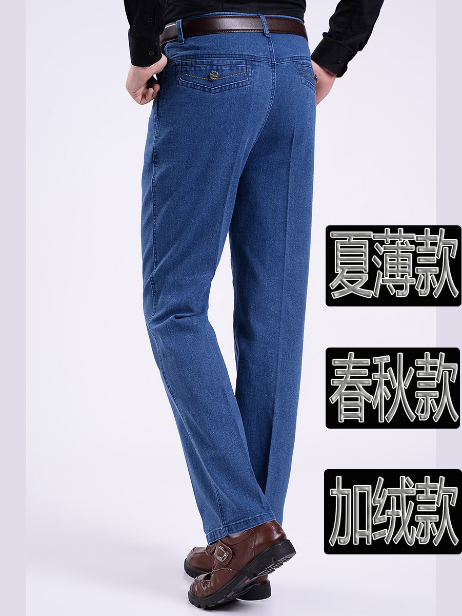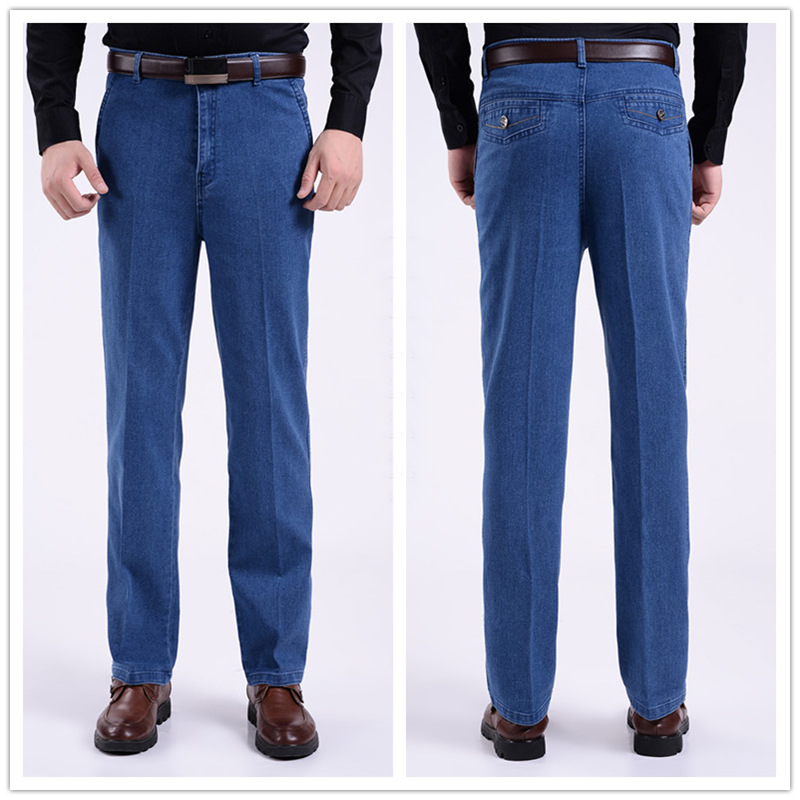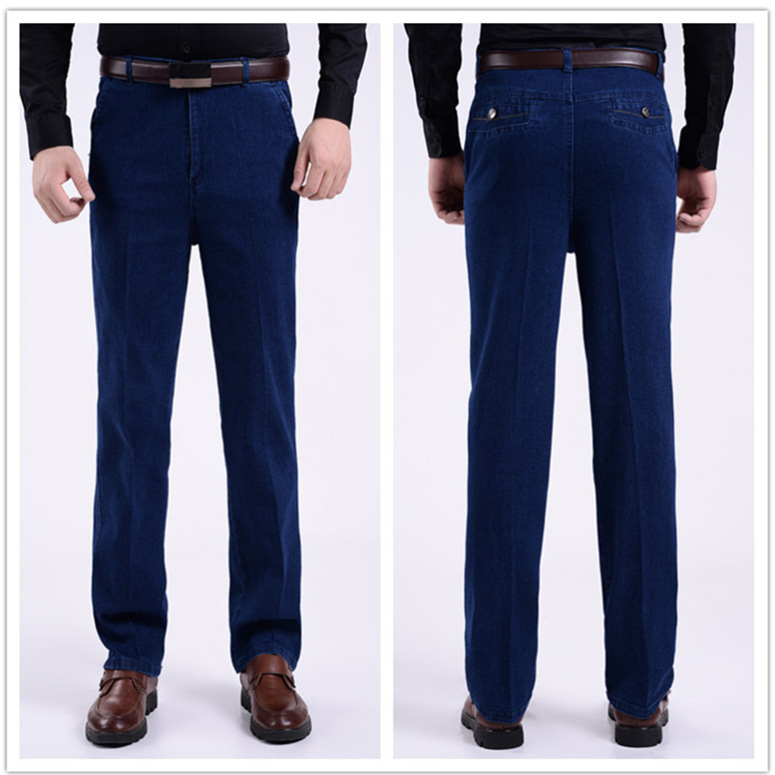 남성용 청바지 중년 남성 바지 신축성 루즈핏 하이웨이스트 남성 바지 중년 및 노년 아빠 남성복 스트레이트 핏 슬림핏