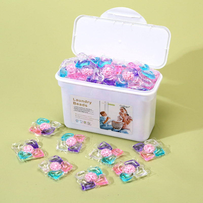 다섯 개의 챔버로 구성된 세탁볼, 오래 지속되는 향기, 깊은 세정, 오염 제거, 부드러운 세탁, 농축 세탁세제, 세탁볼