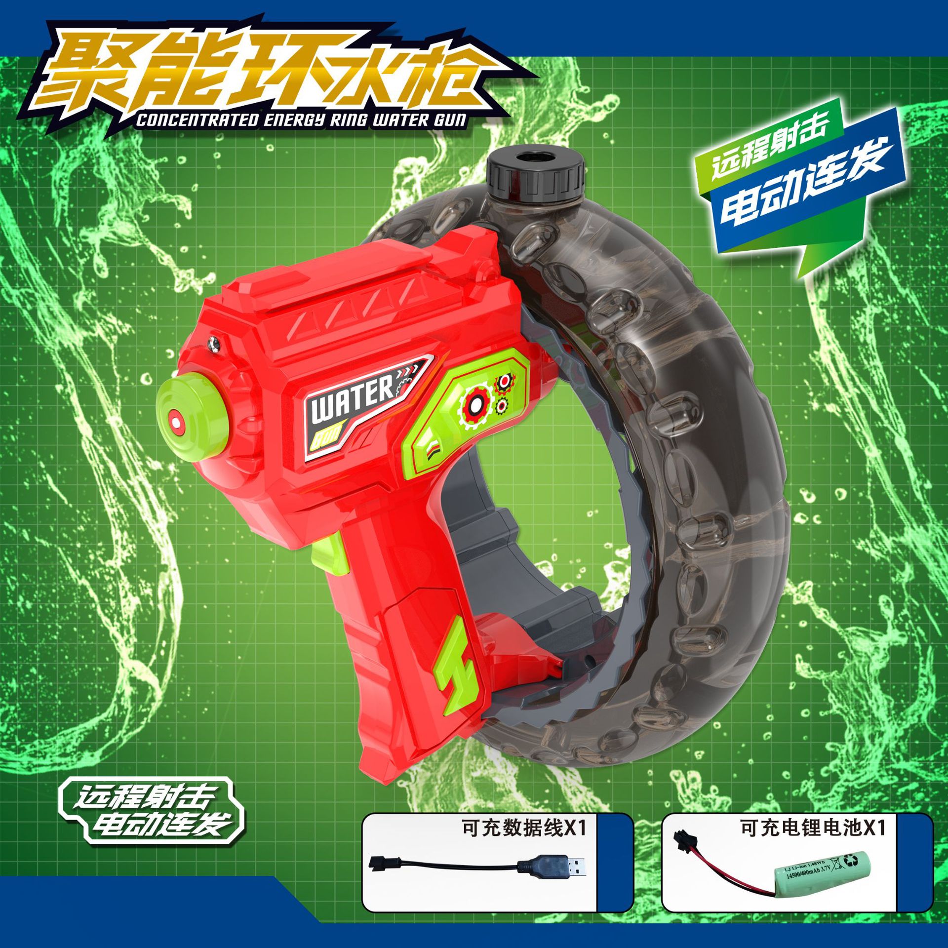 동일한 유형의 에너지 수집 링 전기 물 총 대용량 빛 시원한 물 총 원 버튼 연속 머리 어린이 장난감과 국경 간 트레몰로
