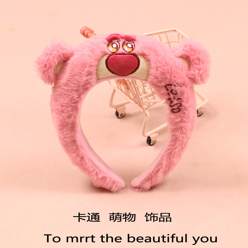 귀여운 봉제 뻣뻣한 딸기 곰 헤어 밴드 만화 헤드웨어 미키 멩 소녀 사진 헤어 카드 놀이 공원 머리띠스토어 가기