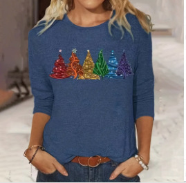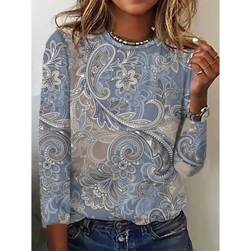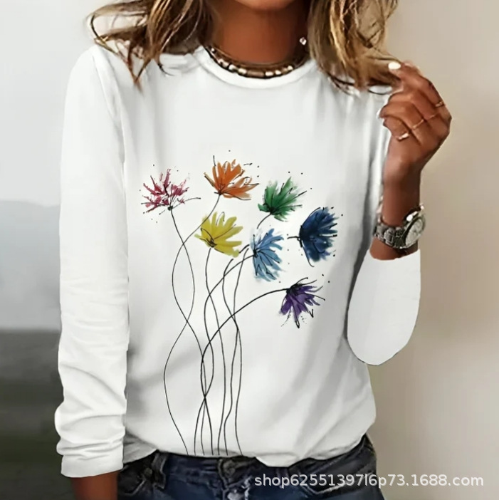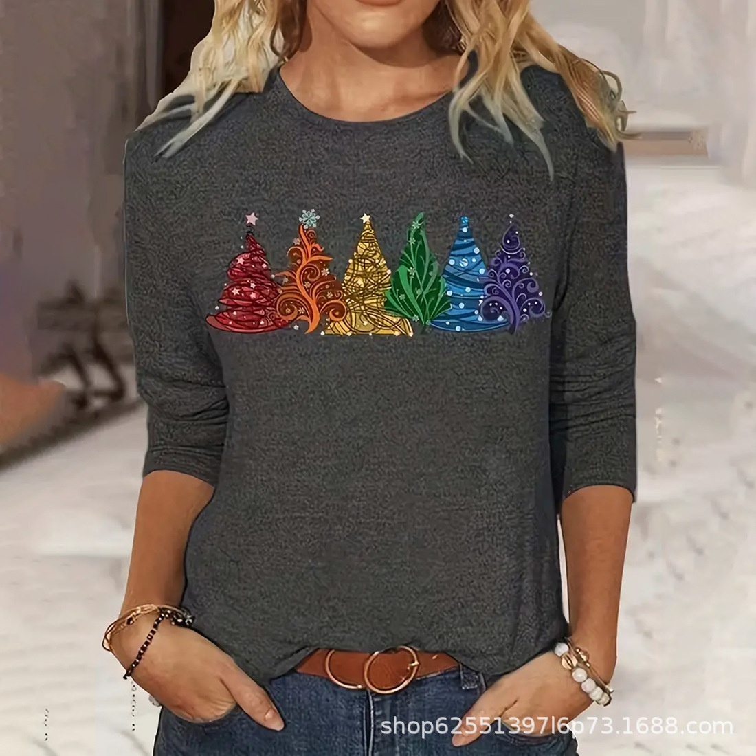 2025년 신상 가을 여성복 유럽 및 미국 스타일 크로스보더 탑 여성 루즈핏 인기 티셔츠 여성 캐주얼 편안한 긴팔
