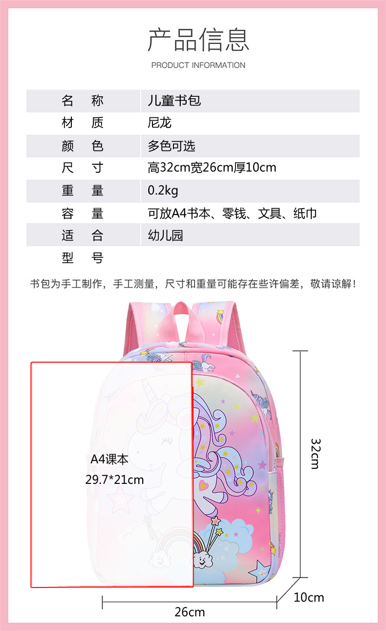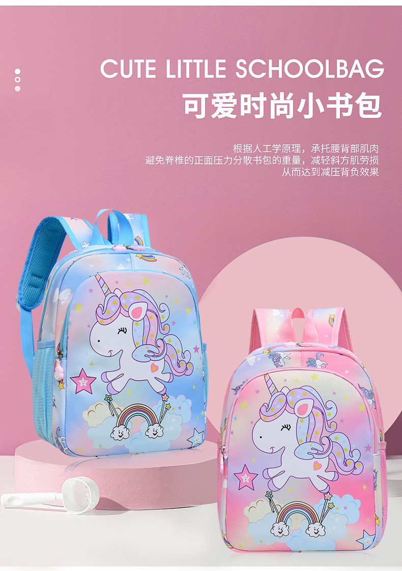 유니콘 만화 인쇄 배낭 유치원 배낭 초경량 대외 무역 새로운 여학생 학교 가방 1 학년 학교 가방스토어 가기