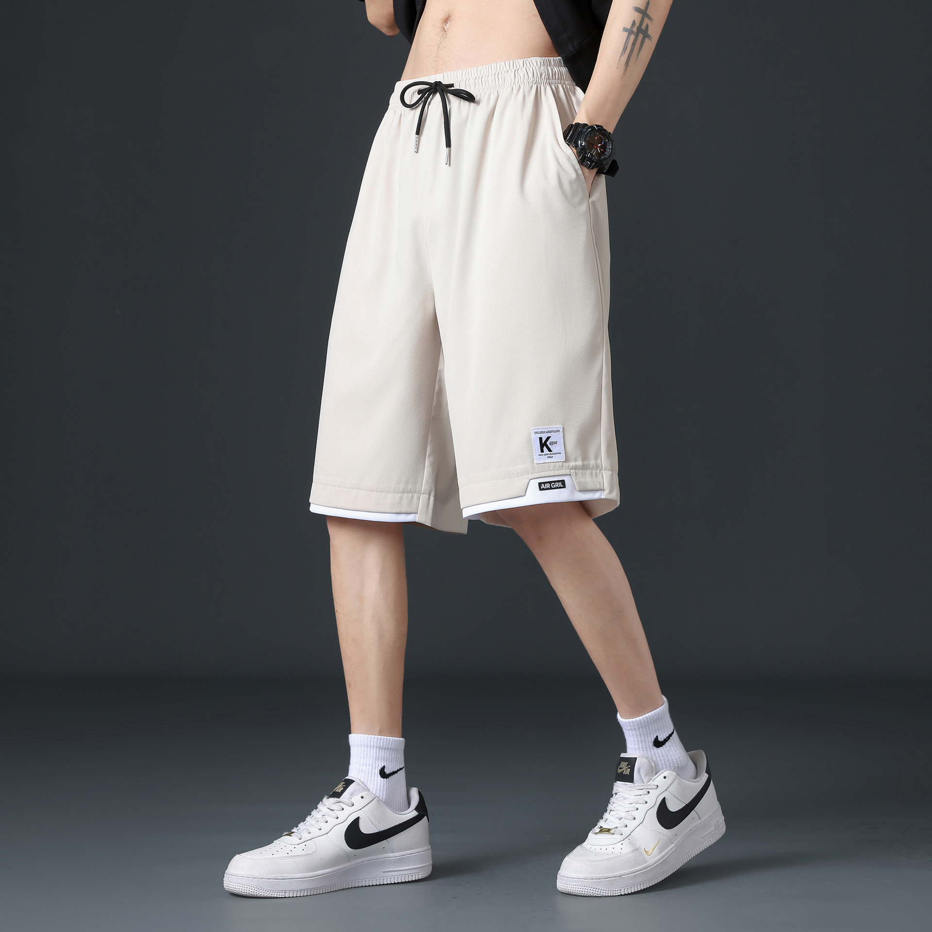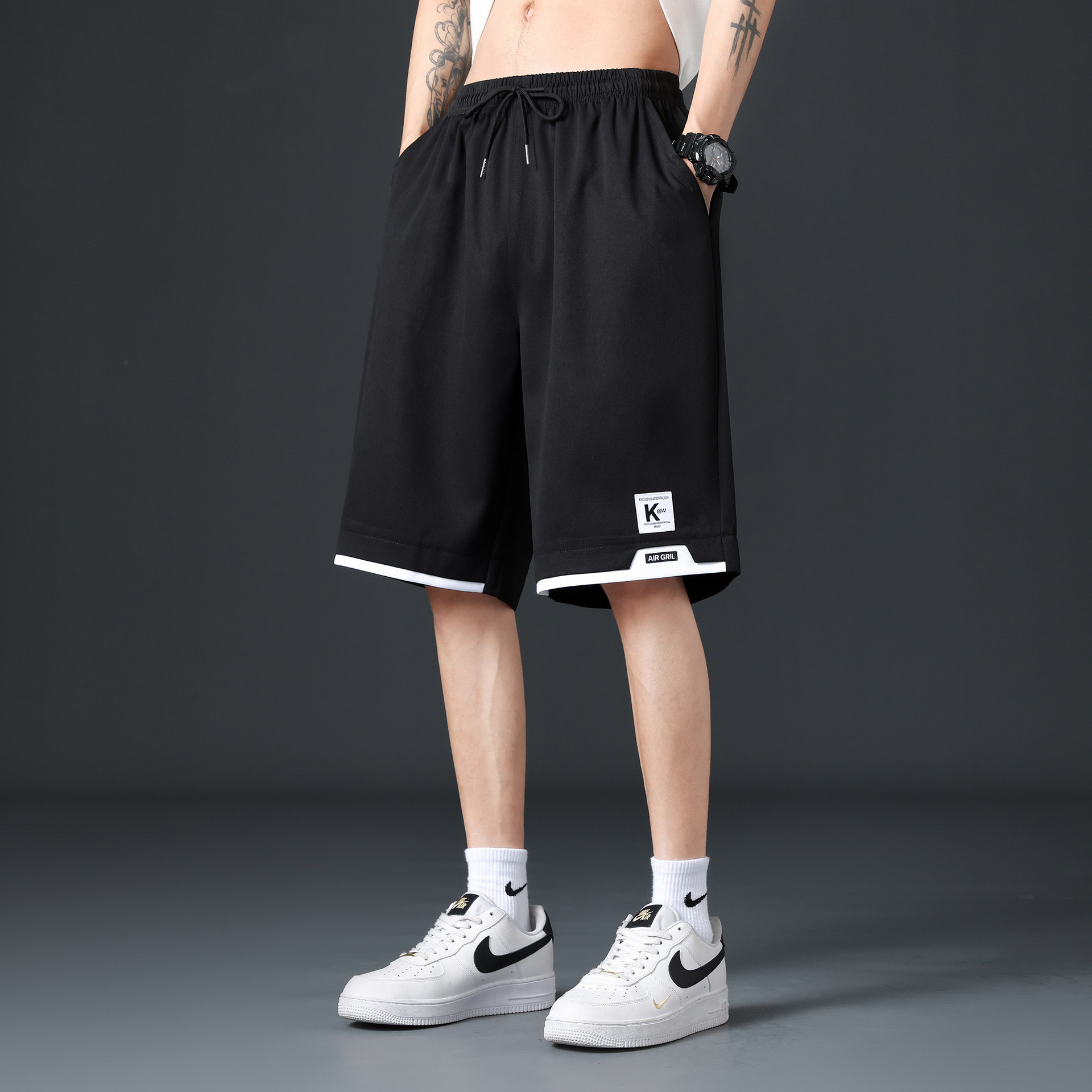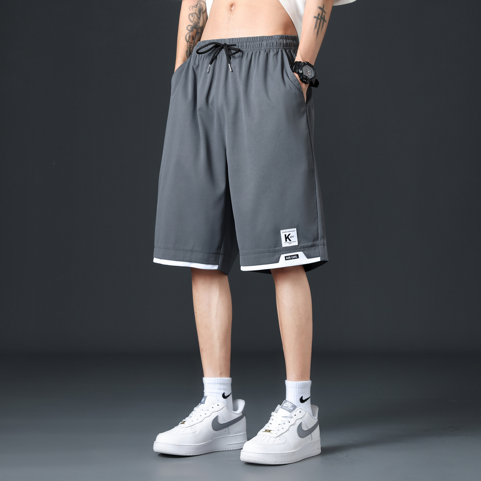 아이스 실크 반바지 남자 여름 2024 새로운 빠른 건조 오버볼 5 점 대형 바지 느슨한 캐주얼 스포츠 중간 바지스토어 가기
