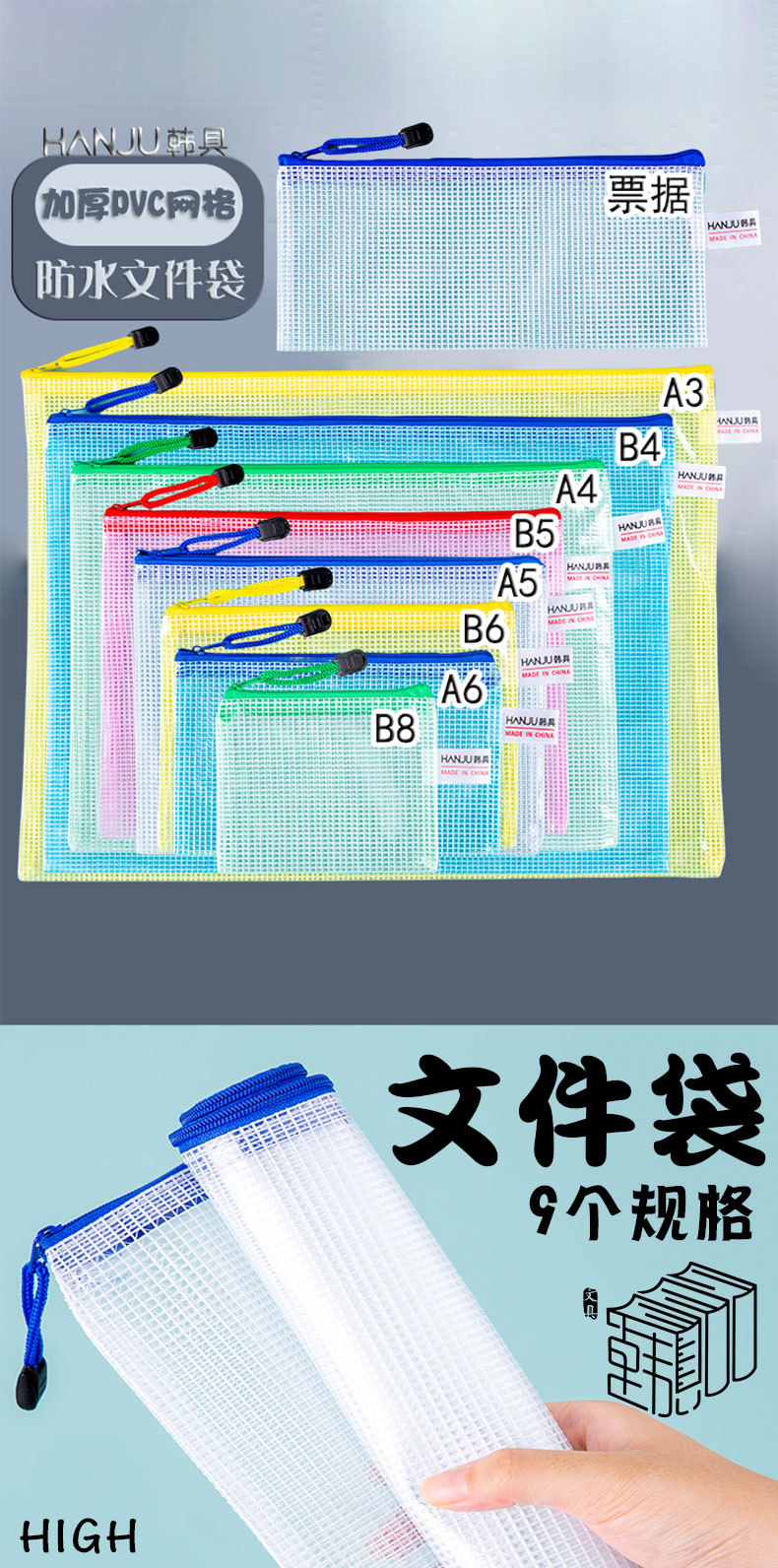 국경 간 한국어 PVC 메쉬 파일 가방 보관 가방 A3B4A4B5A5A6 방수 지퍼 가방 정보 문서 가방스토어 가기