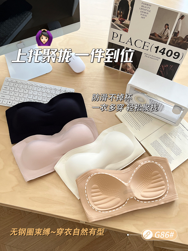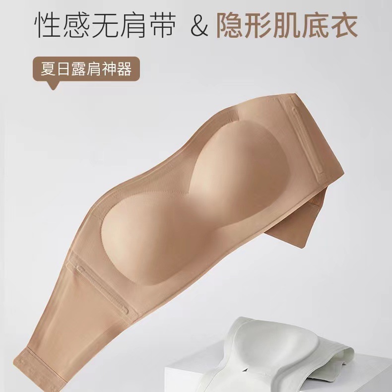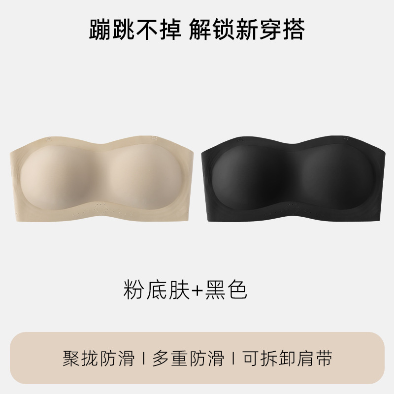 스트랩리스 속옷 여성용 미끄럼 방지 푸시 업 브라와 가슴 패드 튜브 탑 확장 된 사이드 클로징 비 마킹 브래지어 여성을위한 아름다운 등스토어 가기