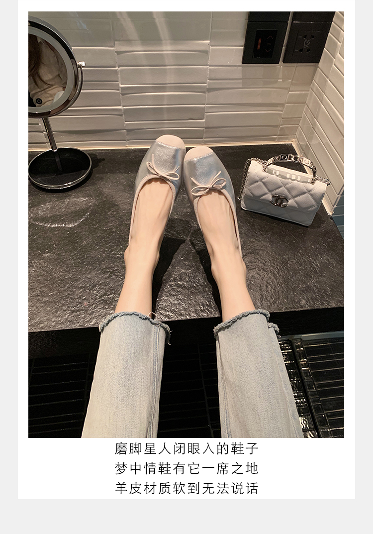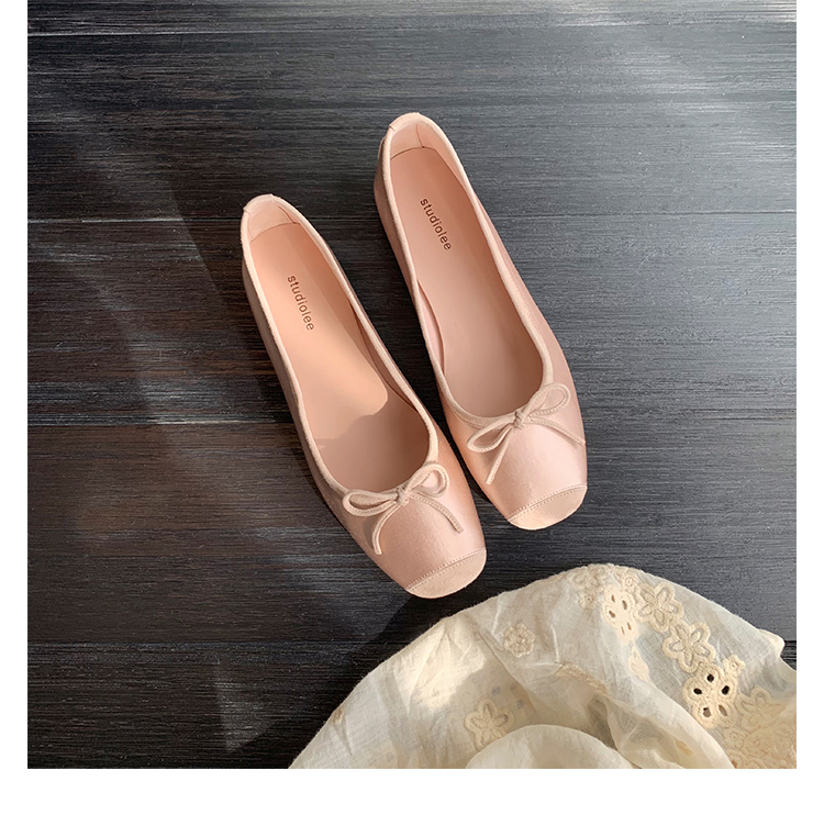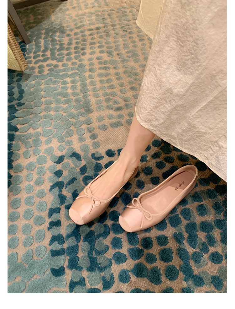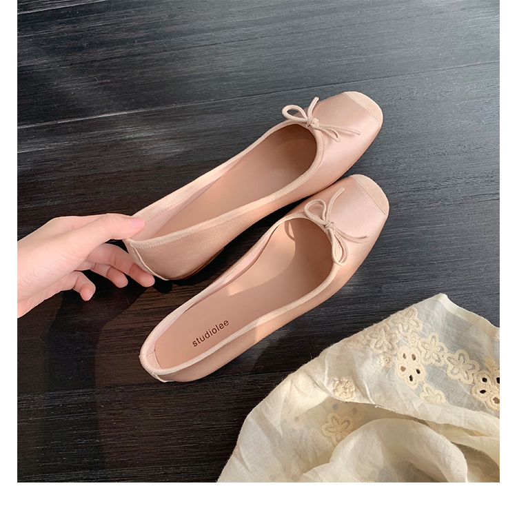 슈퍼 소프트 양가죽 싱글 슈즈 라운드 발가락 얕은 입 보우 발레 슈즈 실크 싱글 슈즈 여성스토어 가기