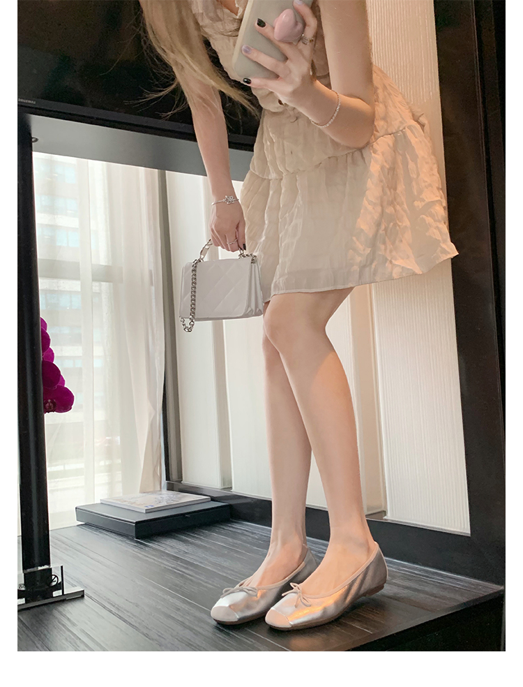 슈퍼 소프트 양가죽 싱글 슈즈 라운드 발가락 얕은 입 보우 발레 슈즈 실크 싱글 슈즈 여성