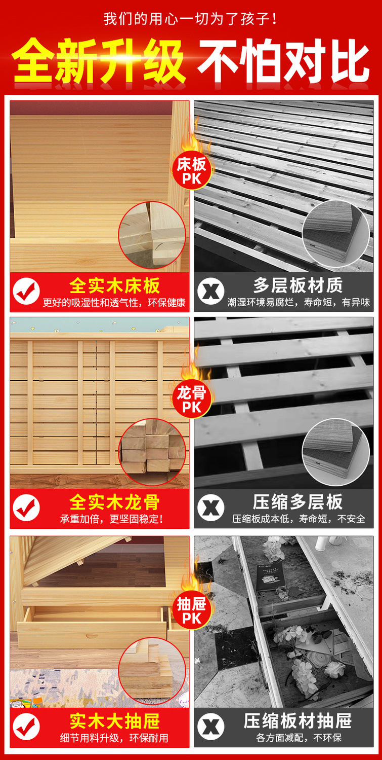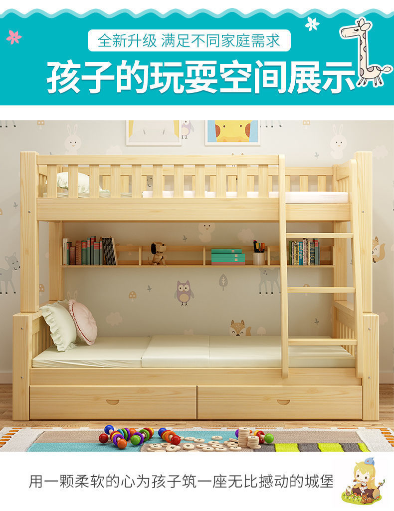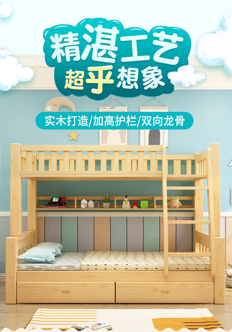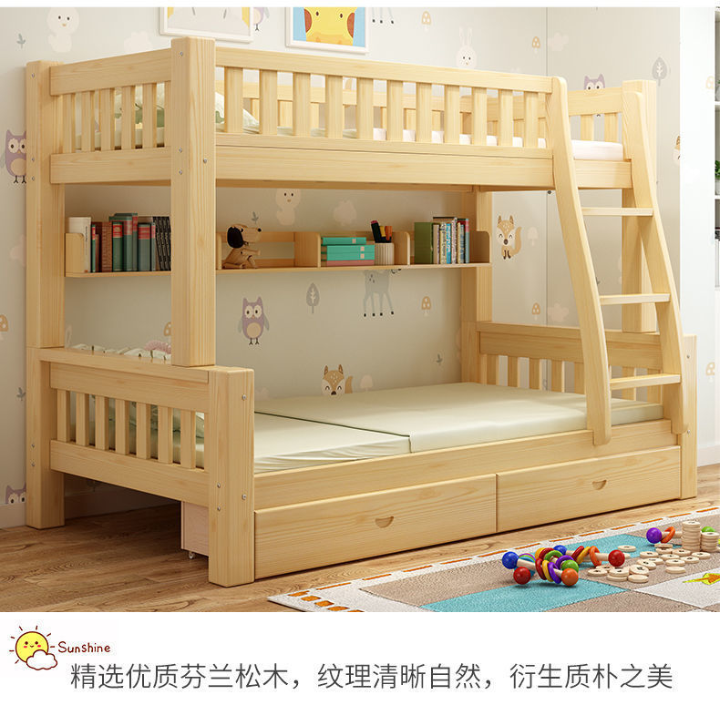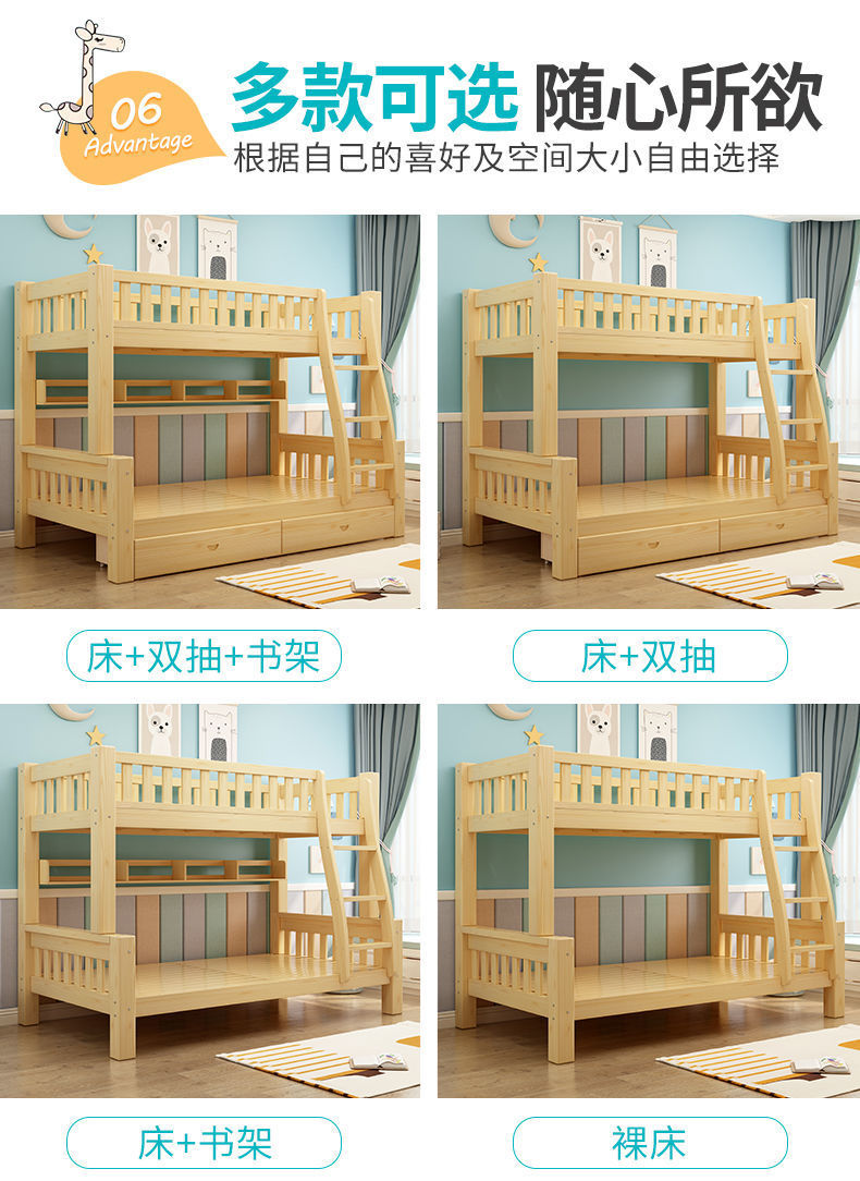 단단한 나무 침대 및 침대 더블 레이어 어린이 침대 다기능 안전 높은 낮은 침대 어머니 침대 침대 및 침대스토어 가기