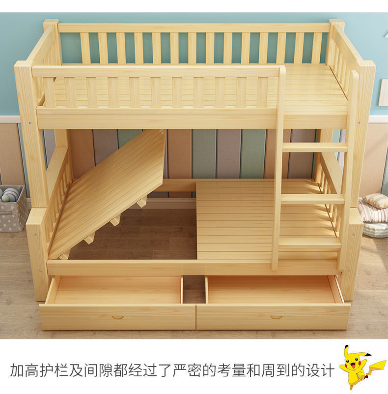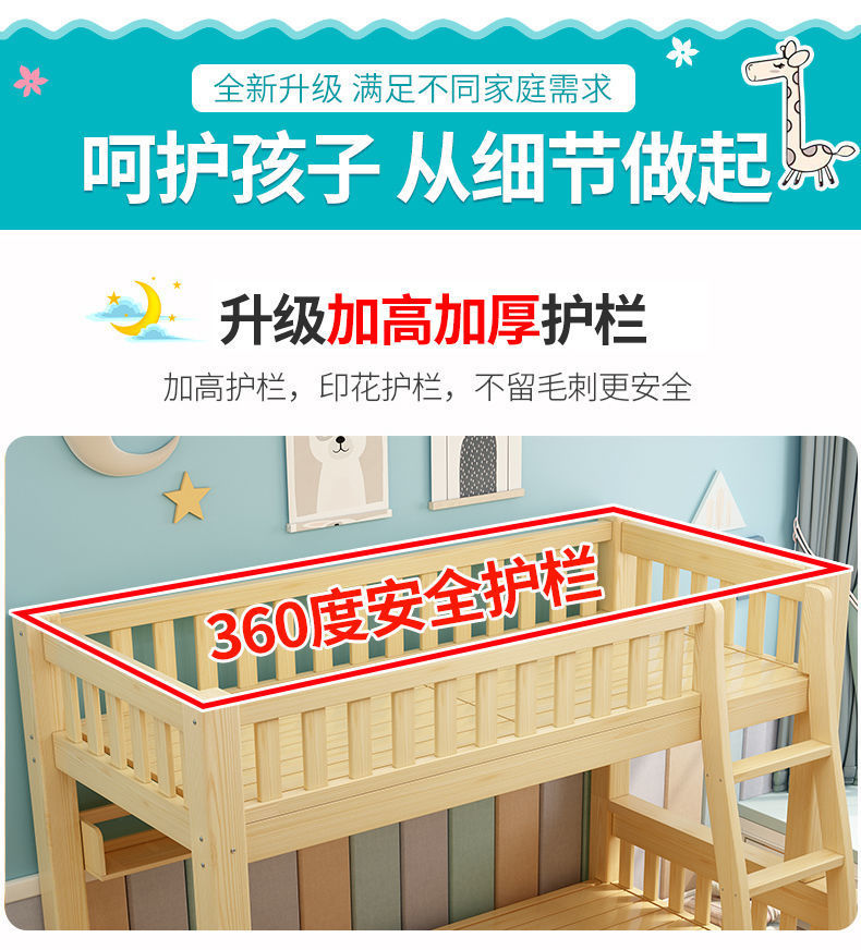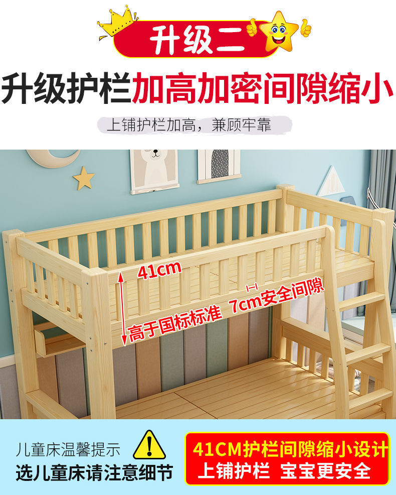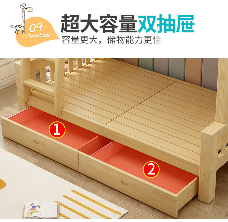 단단한 나무 침대 및 침대 더블 레이어 어린이 침대 다기능 안전 높은 낮은 침대 어머니 침대 침대 및 침대