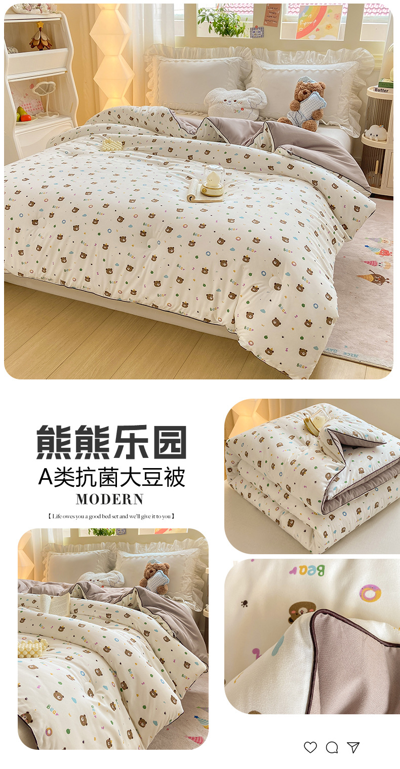 • 워셔블 더블 레이어 거즈 여름 이불 - 베어 파라다이스 [품질검사 완료, 세탁 가능]