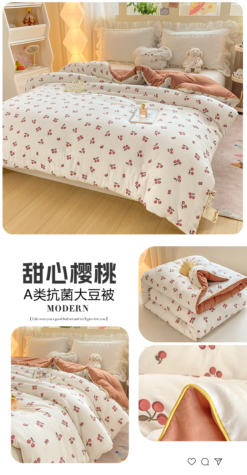 • 워셔블 더블 레이어 거즈 여름 이불 - 스윗하트 체리 [품질검사 완료, 세탁 가능]