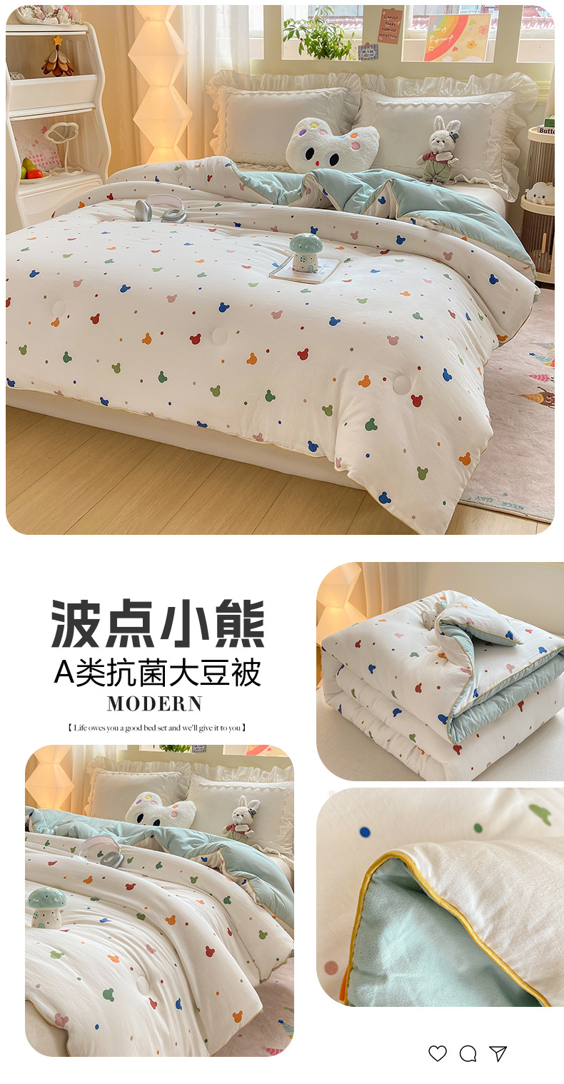 • 워셔블 더블 레이어 거즈 여름 이불 - 폴카 도트 베어 [품질 검사 및 세탁 가능]