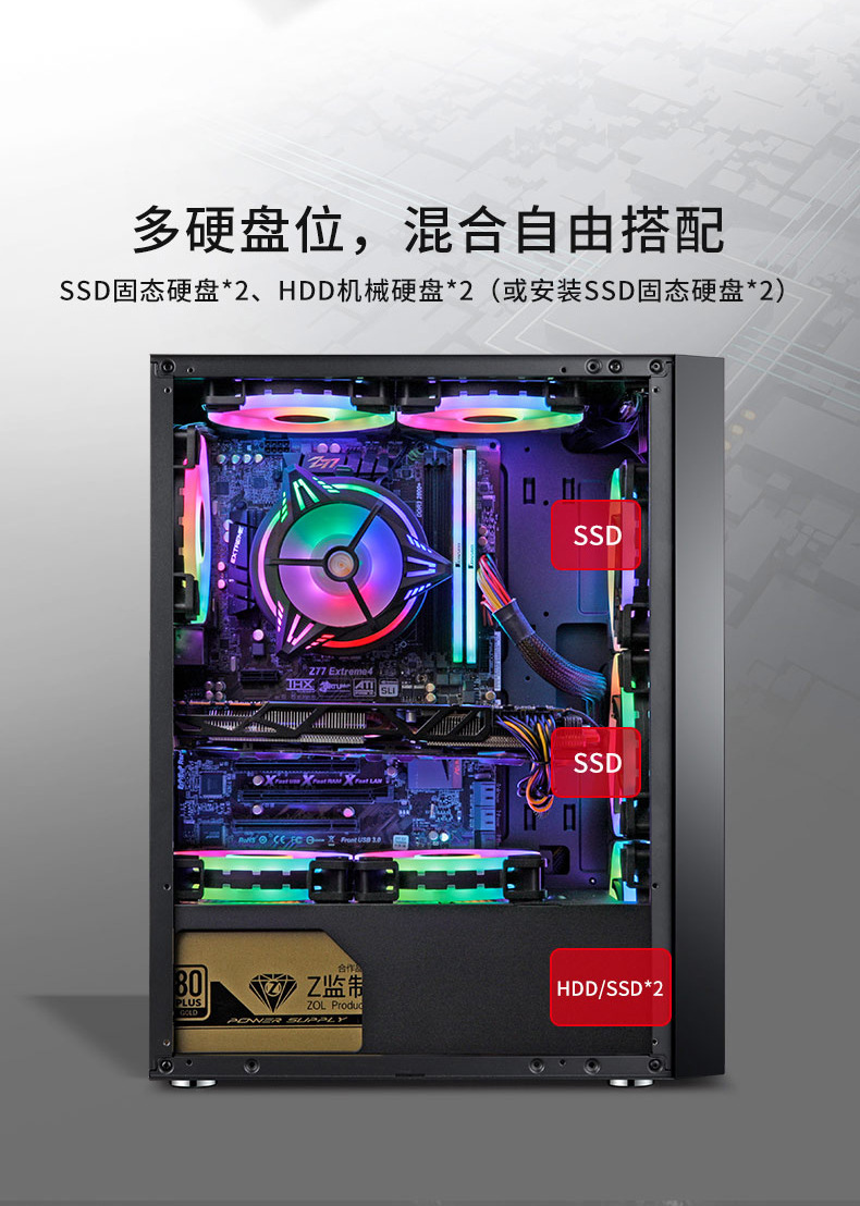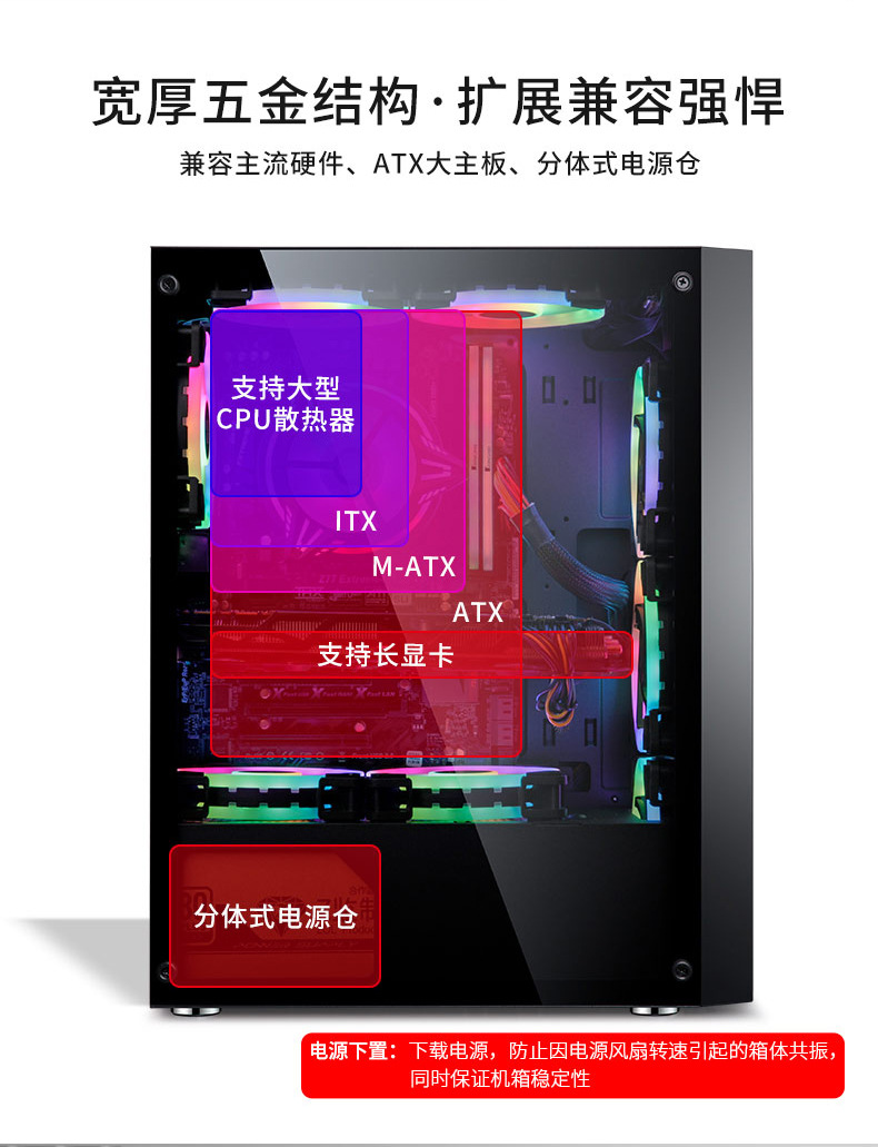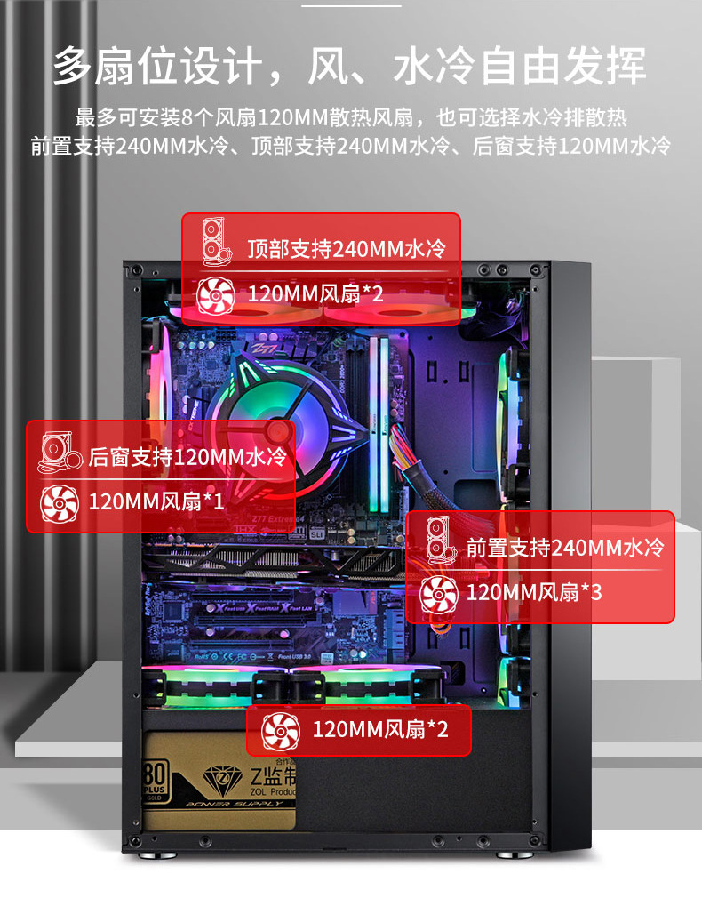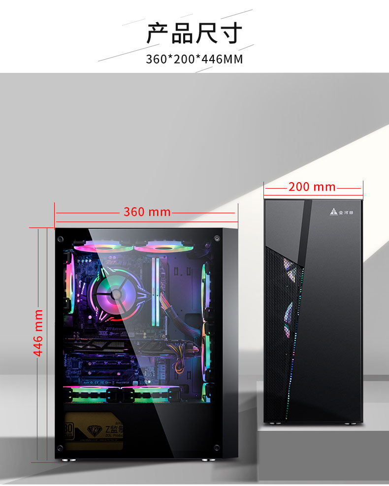 Jinhetian 각성 데스크탑 섀시 atx 미들 타워 사이드 글래스-성격 DIY 게임 어셈블리 메인 섀시 쉘