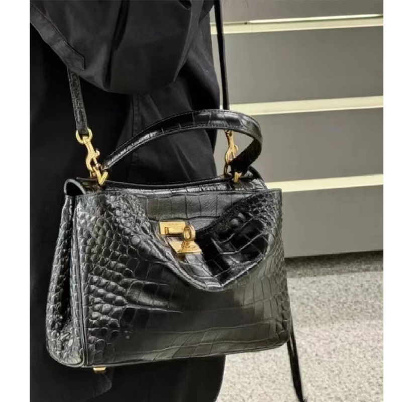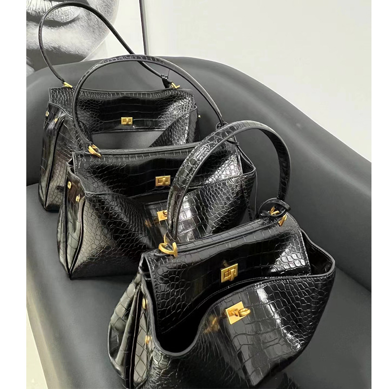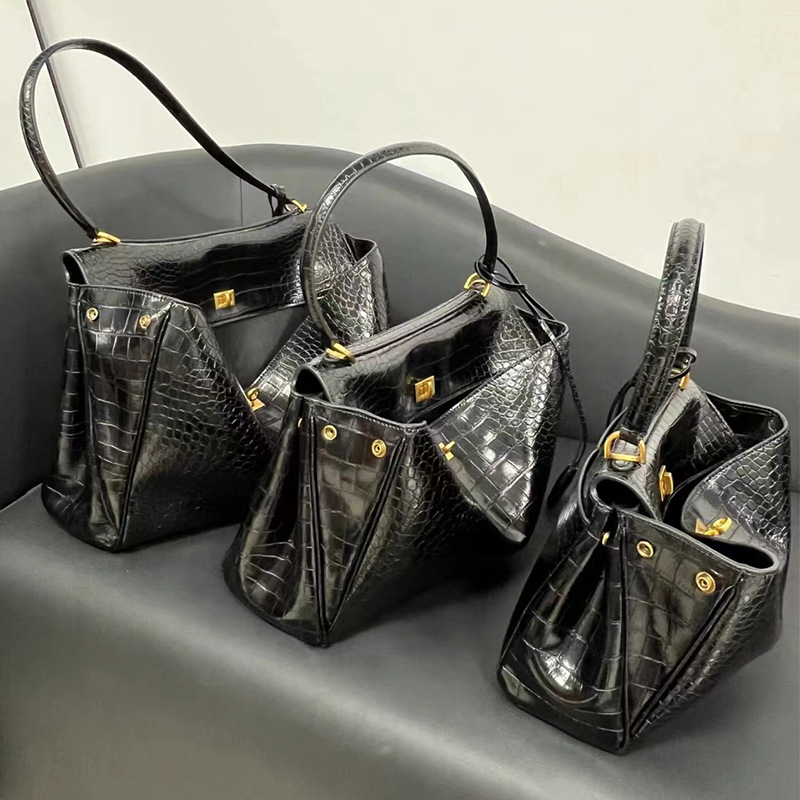 • 악어 패턴 블랙 골드 라벨 대형