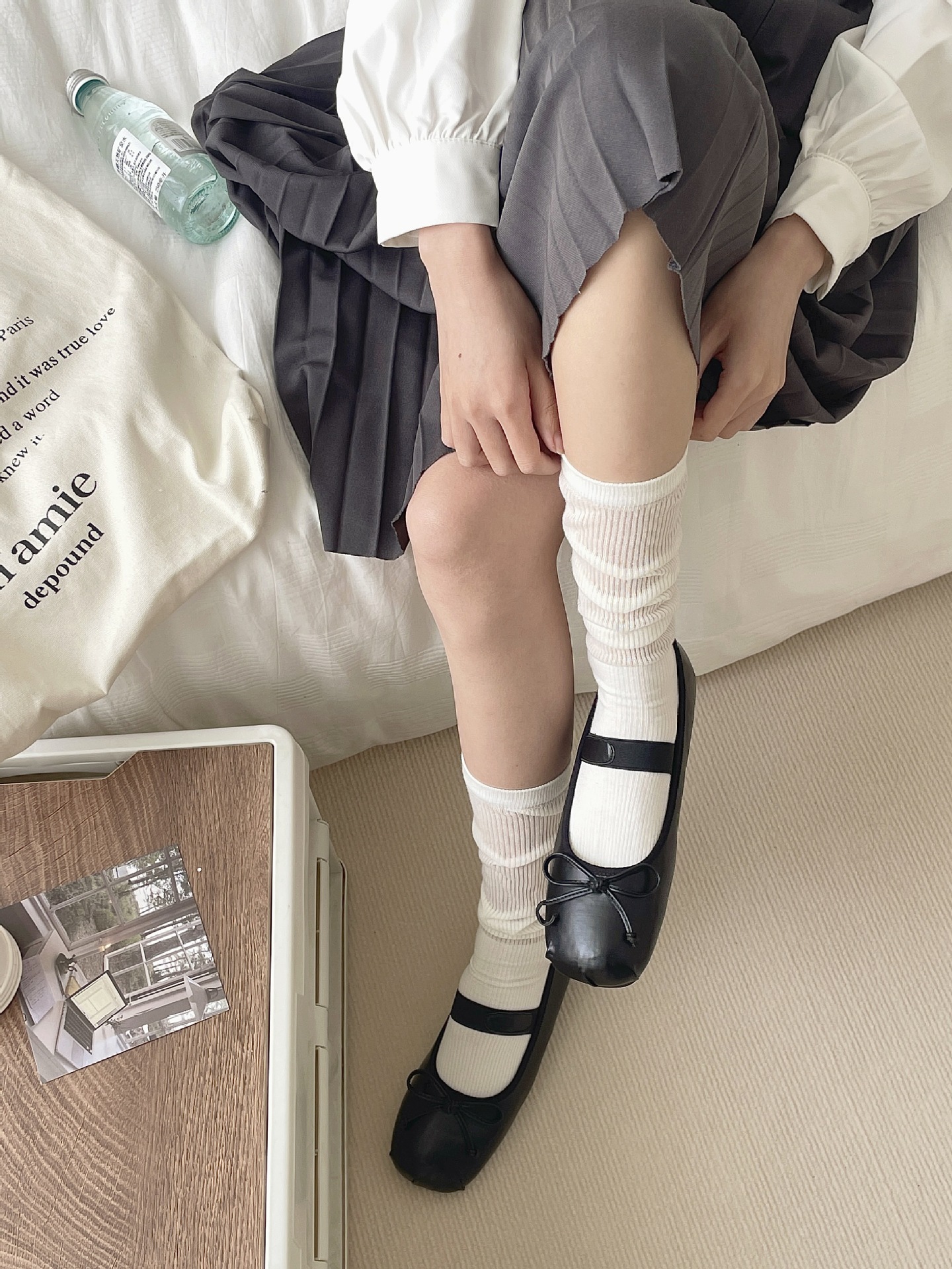 발레 스타일 양말 여성용 긴 튜브 파일 양말 작은 가죽 신발 얇은 jk 흰색 종아리 양말 여름 양말 도매스토어 가기