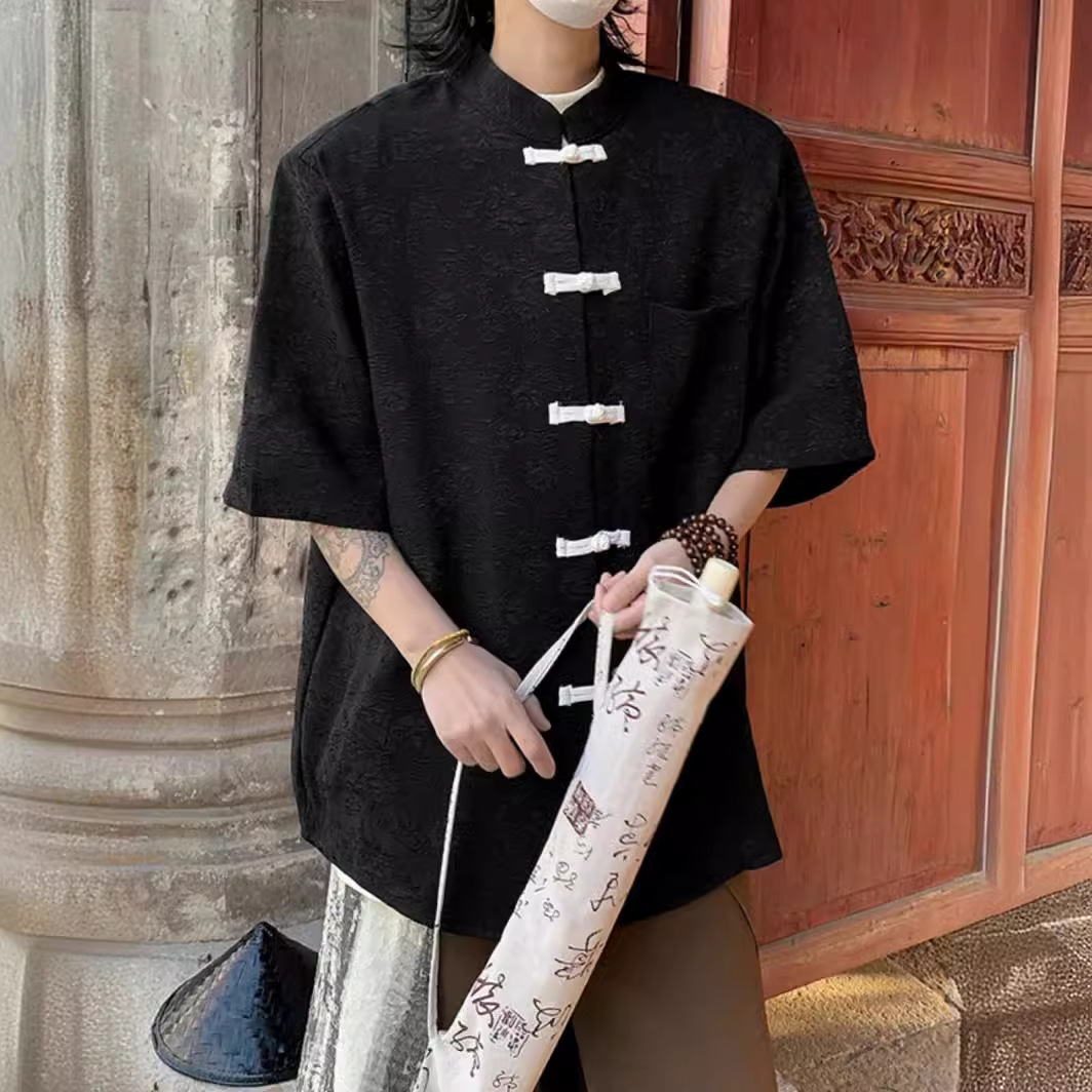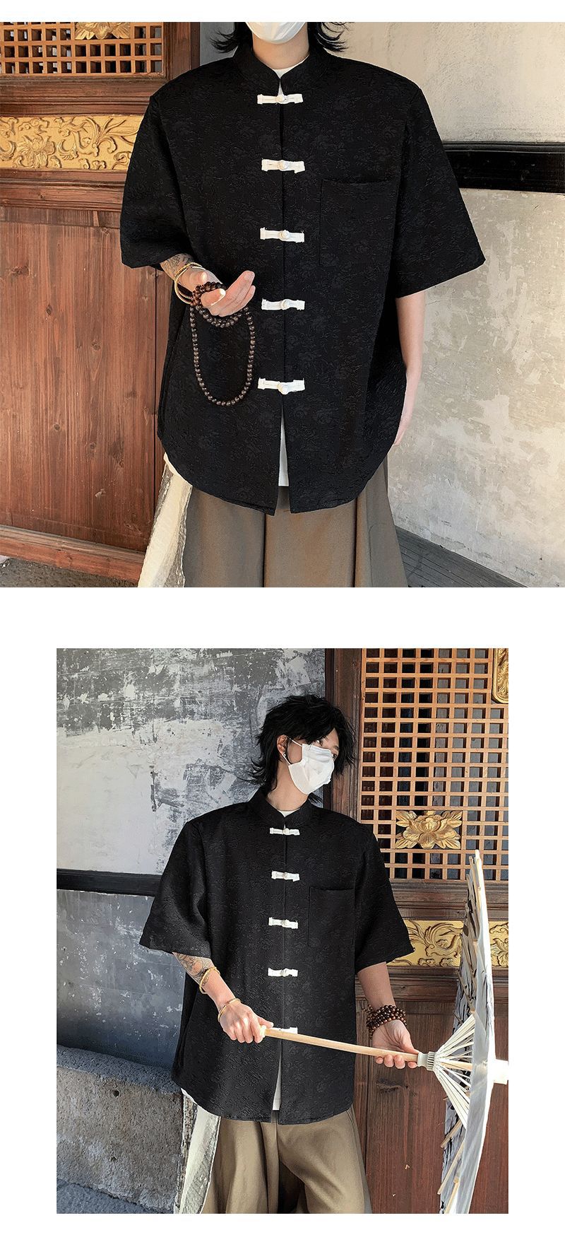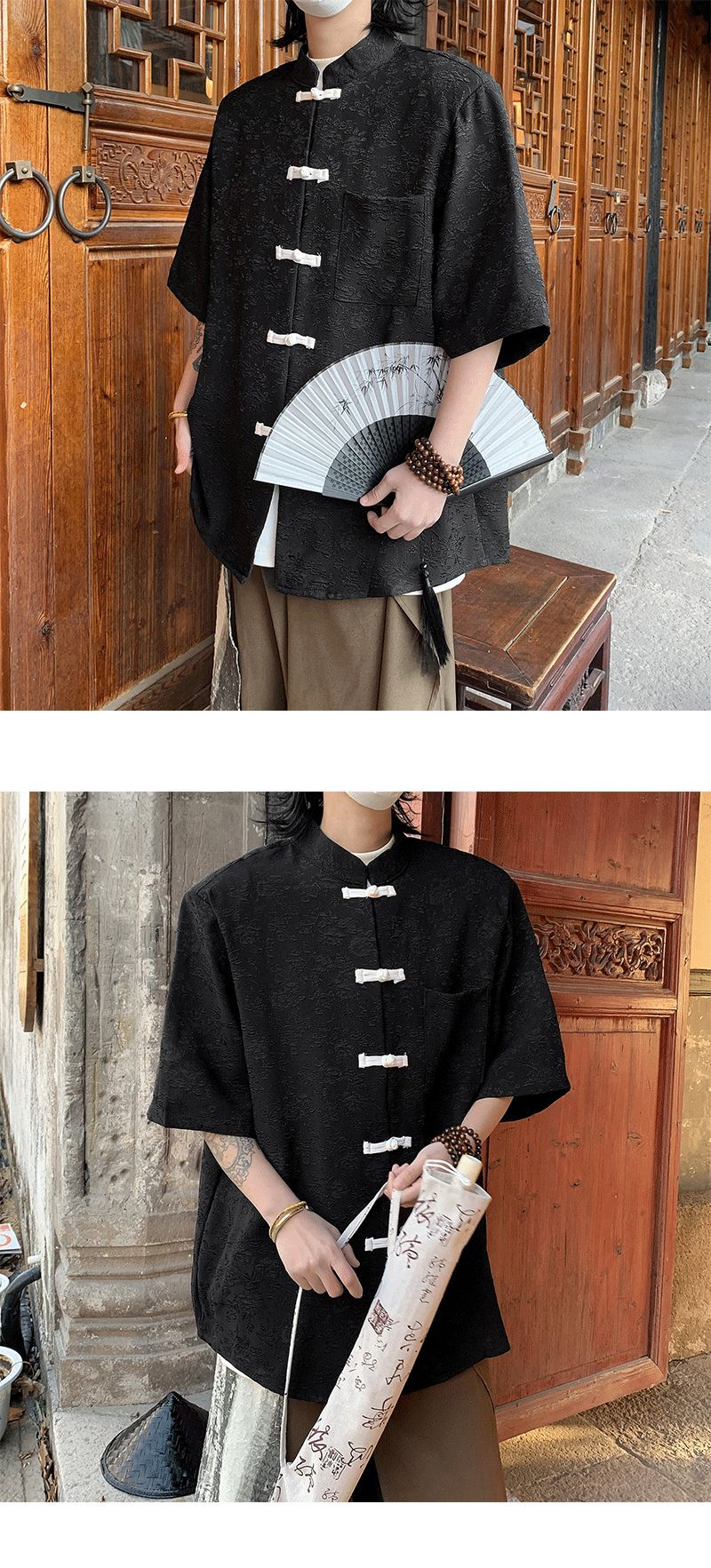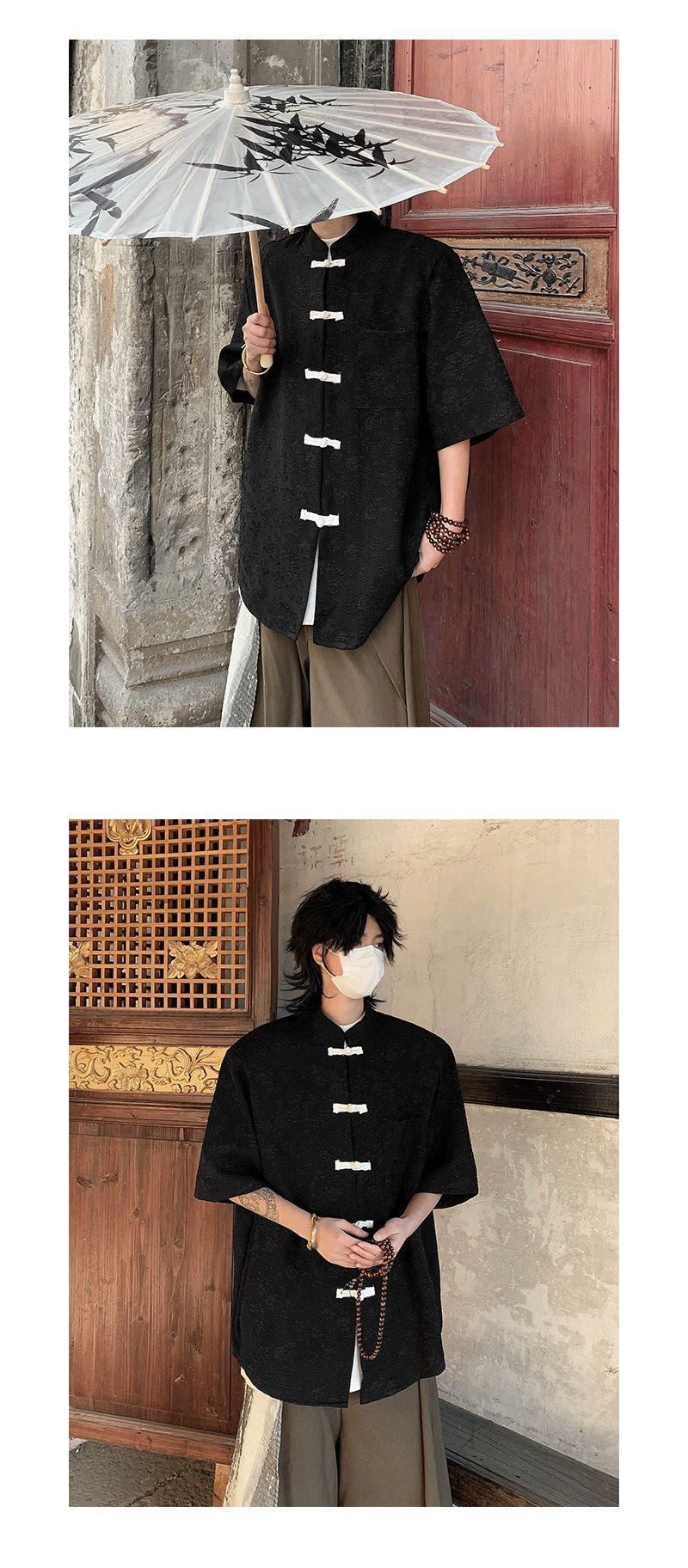새로운 중국 스타일 국가 스타일 짧은 소매 셔츠 남자의 2024 여름 새로운 디자인 감각 틈새 느슨한 중산 세트 셔츠 재킷스토어 가기