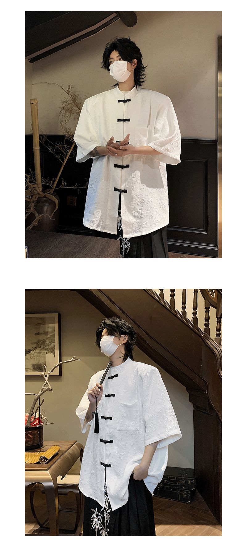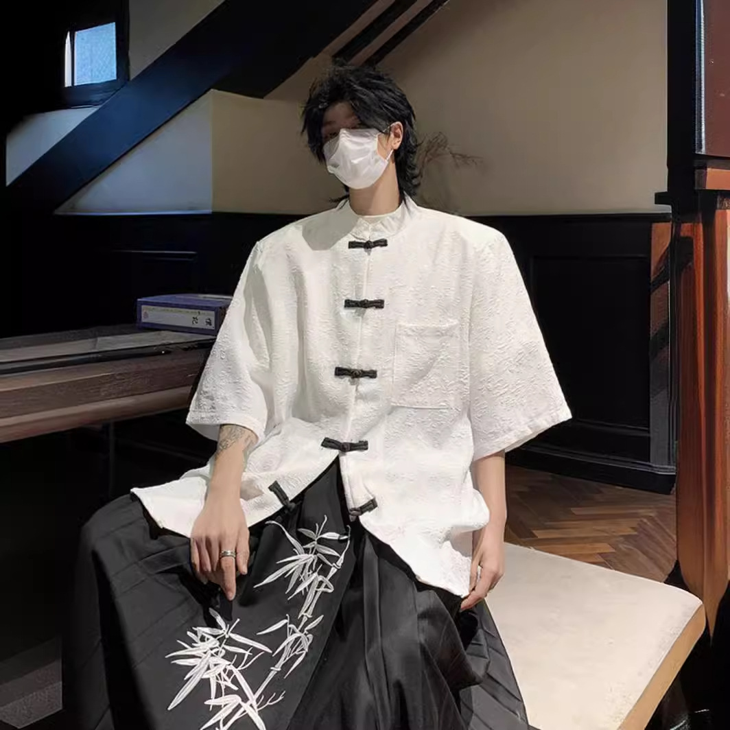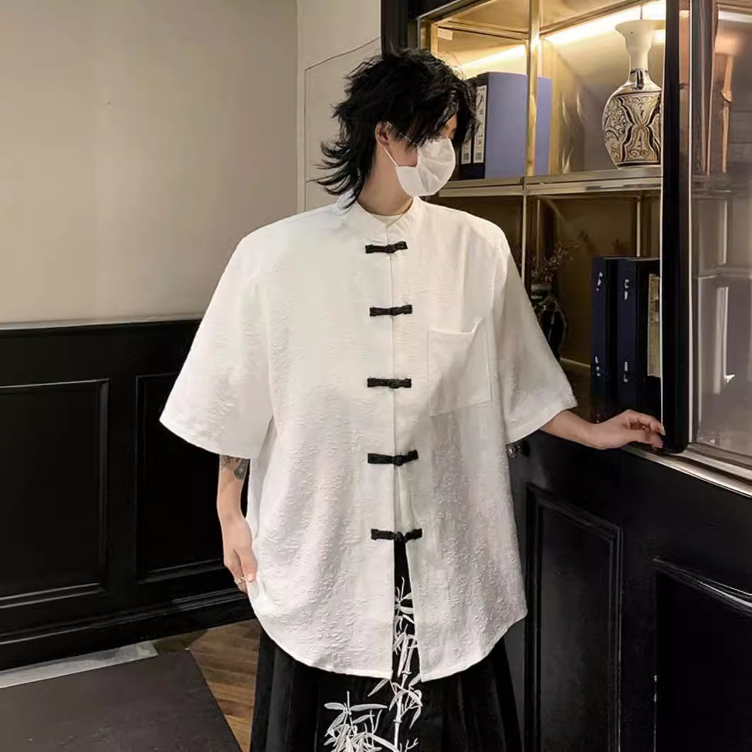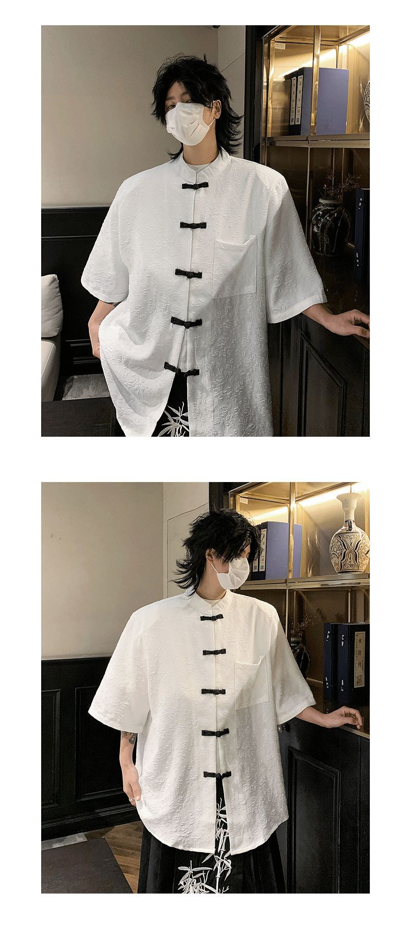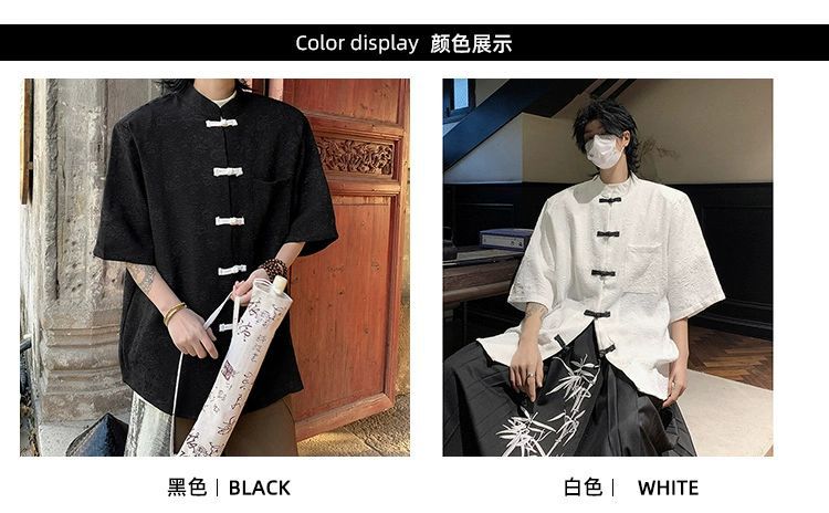 새로운 중국 스타일 국가 스타일 짧은 소매 셔츠 남자의 2024 여름 새로운 디자인 감각 틈새 느슨한 중산 세트 셔츠 재킷스토어 가기
