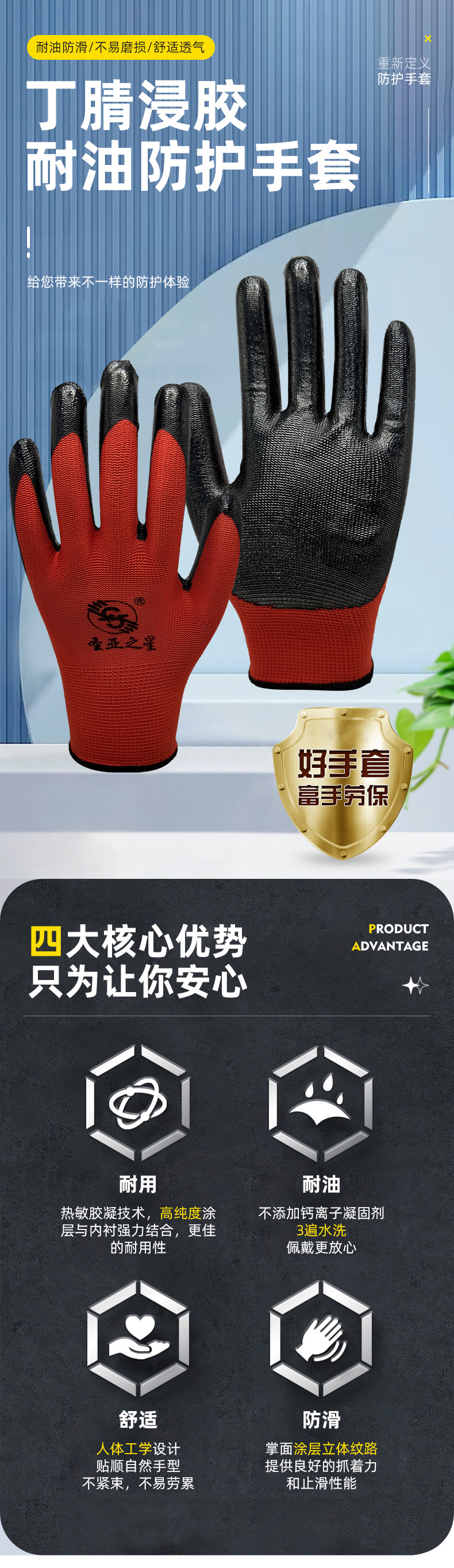 미끄럼 방지 내마모성 건설용 고무 코팅 안전 장갑, 건설 현장 용접 통기성 보호 장갑, 니트릴 코팅 장갑스토어 가기