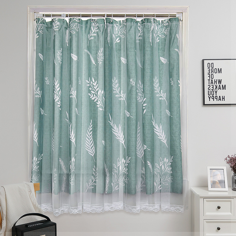 펀치없는 교수형 링 타입 펀치 음영 커튼 기숙사 침실 창 베이 주방 빛 투명한 부식성 거즈 커튼 완제품스토어 가기