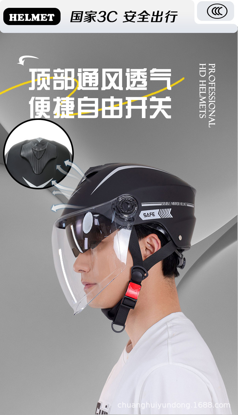 3C 인증 전기 오토바이 헬멧 남녀 여름 자외선 차단제 배터리 반 헬멧 사계절 유니버설 헬멧스토어 가기