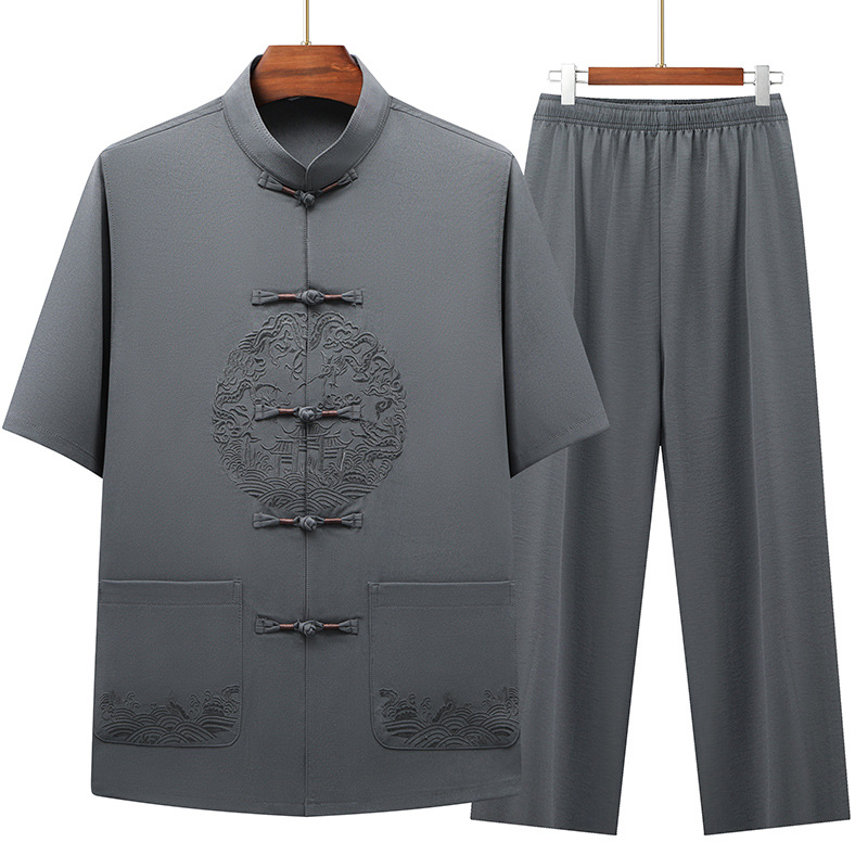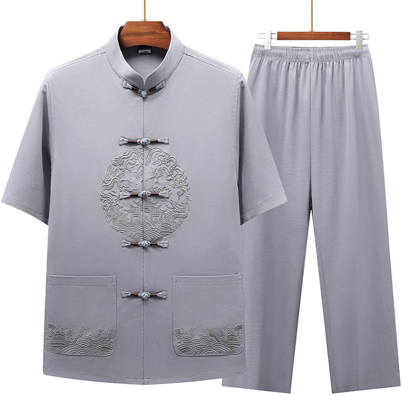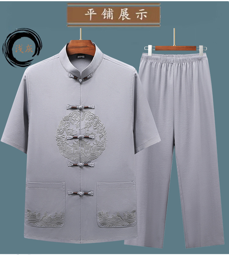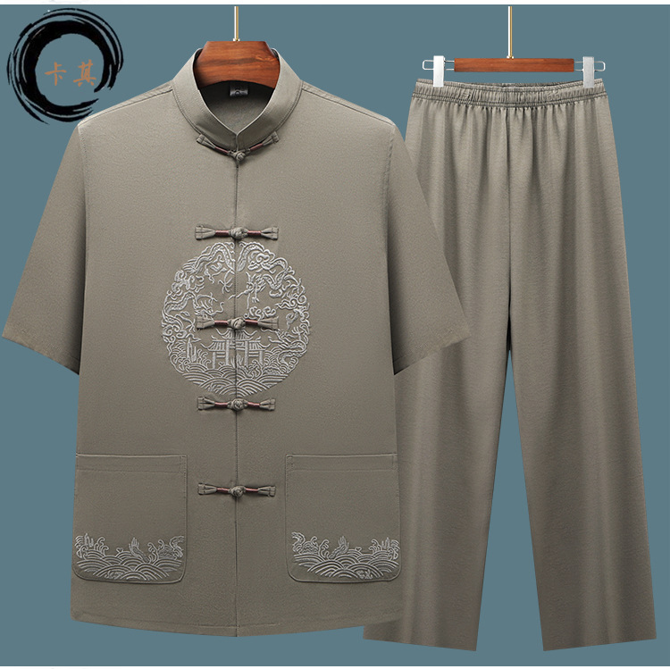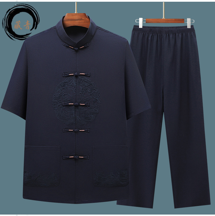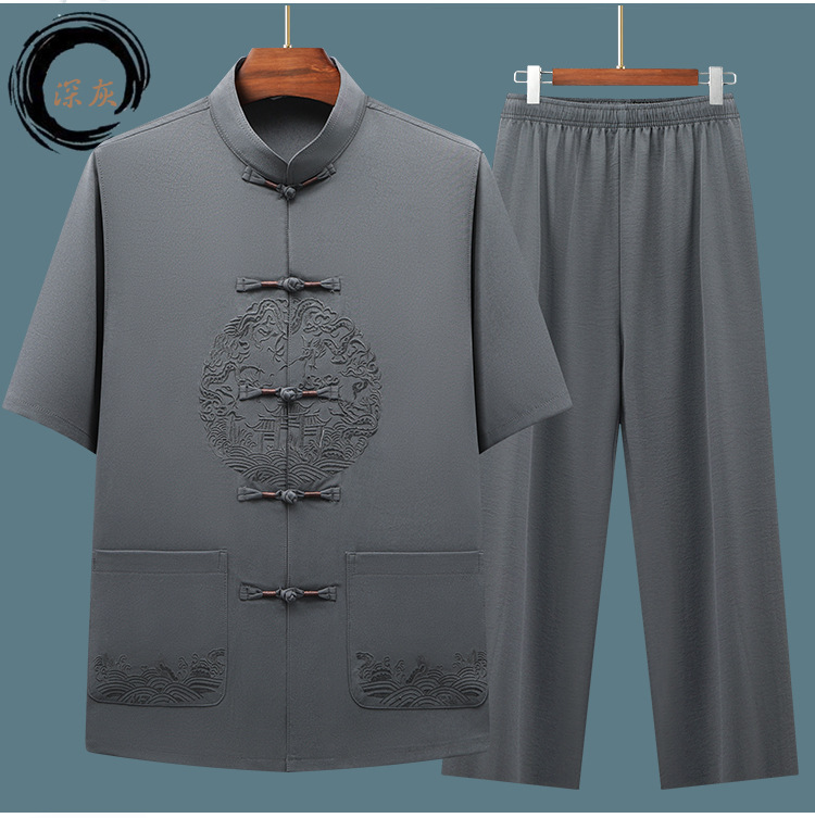 탕 세트 남성 반팔 여름 아빠 세트 중년 및 노인 중국 패션 세트 코튼 리넨 한푸 탑 할아버지 새 스타일스토어 가기
