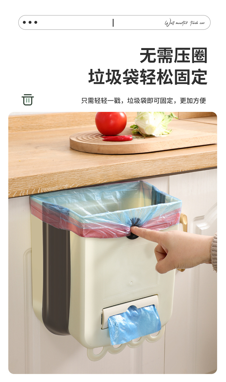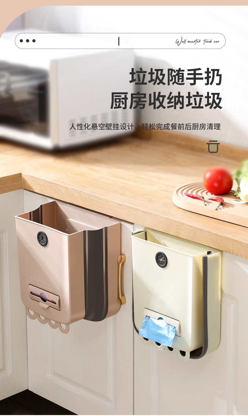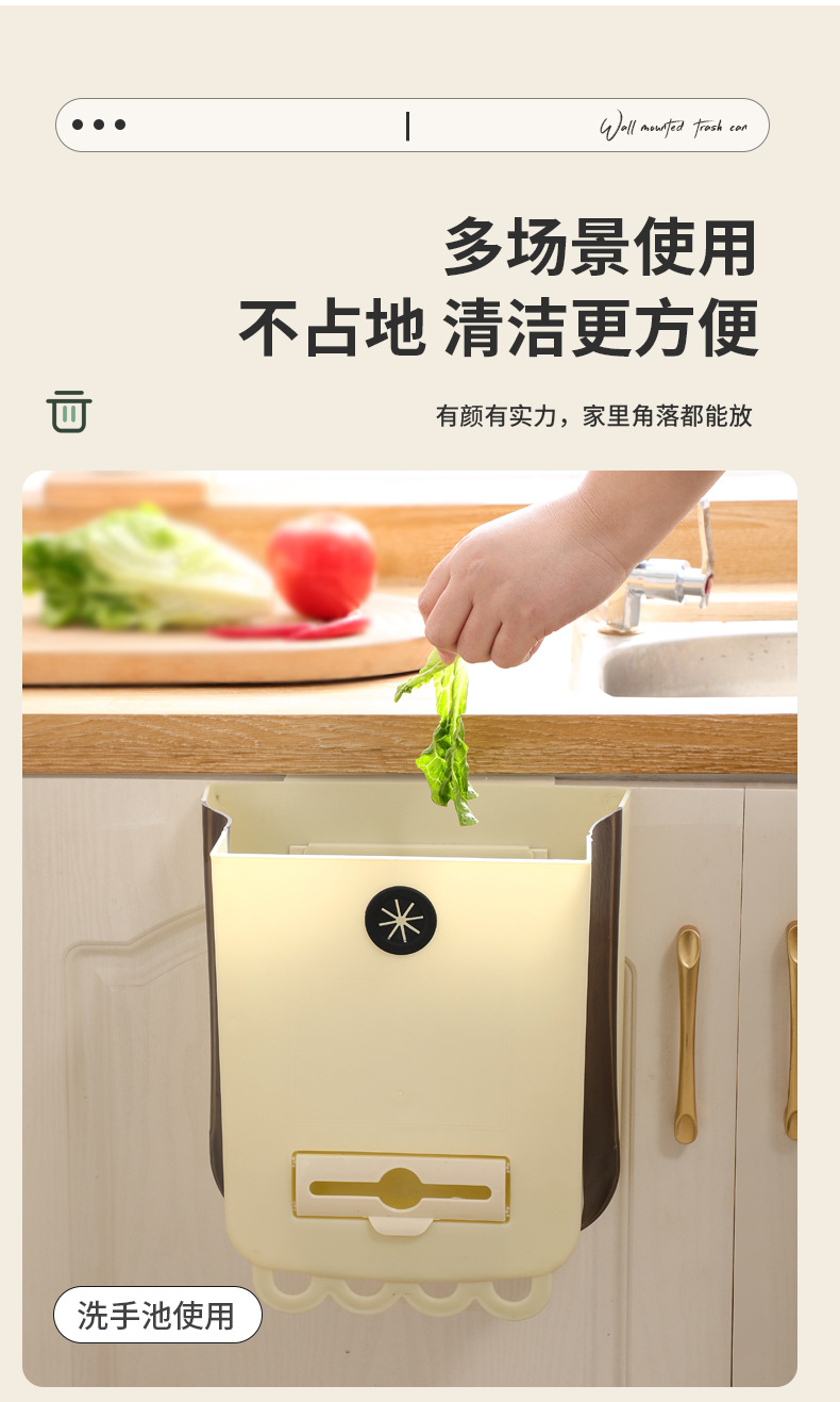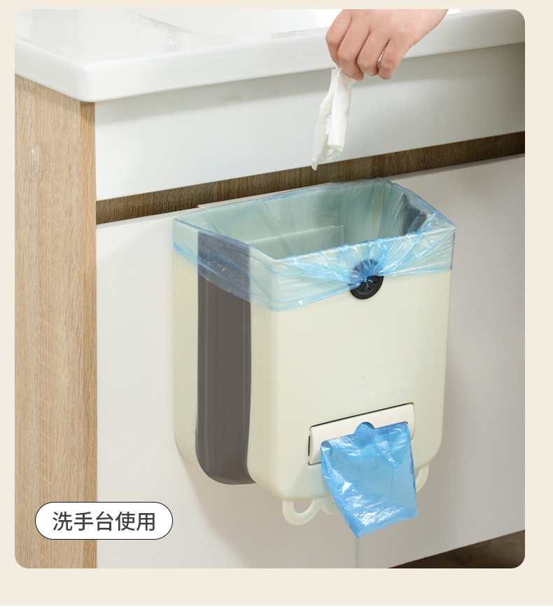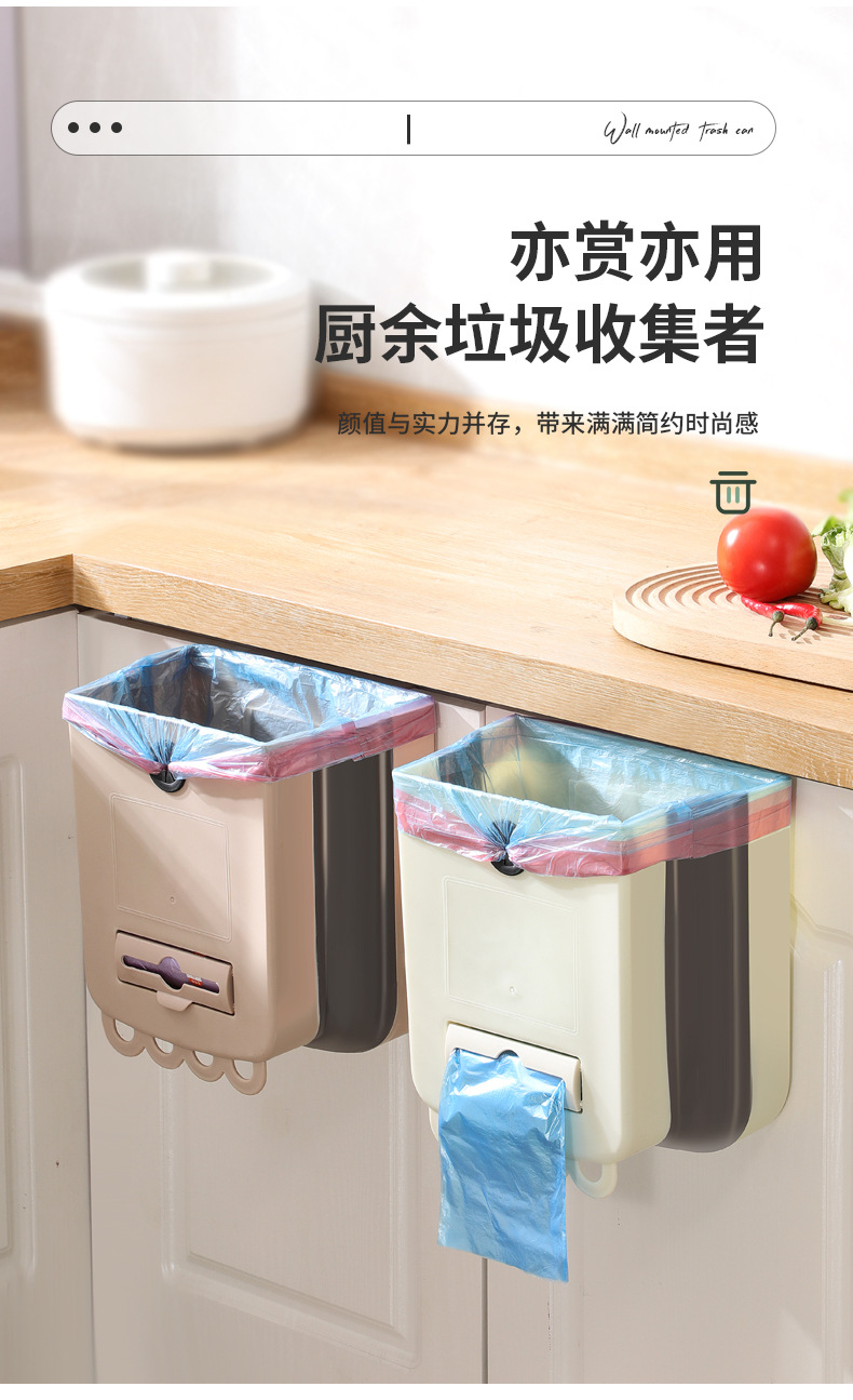 가정용 접이식 휴지통 벽 교수형 무료 휴지통 빈 대형 주방 저장 배럴 높은 색상 가치 교수형 쓰레기통
