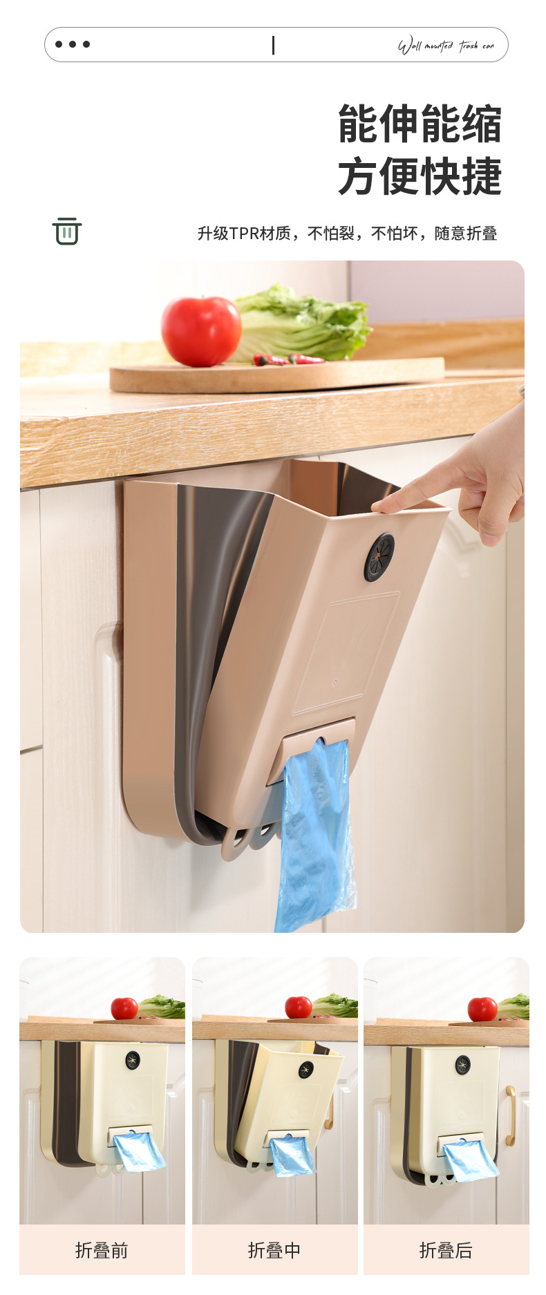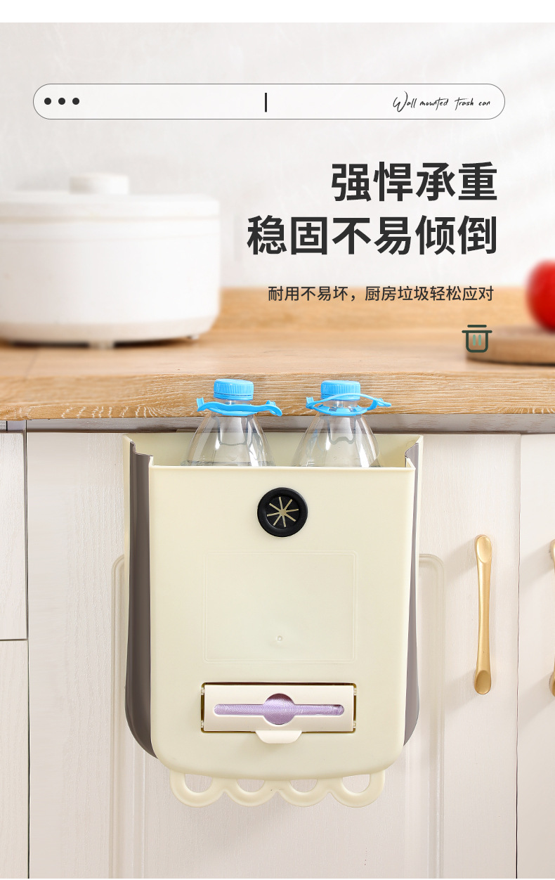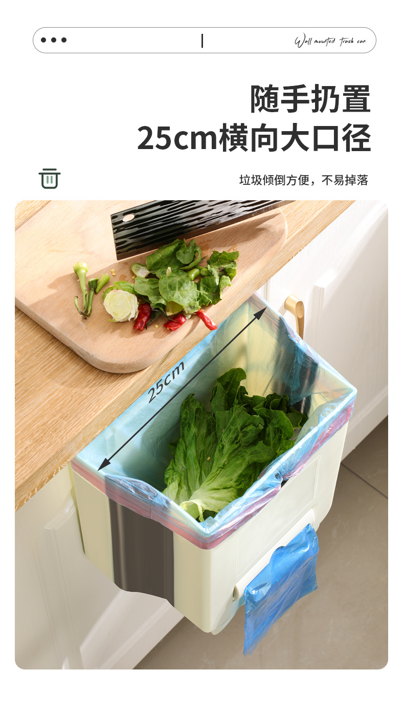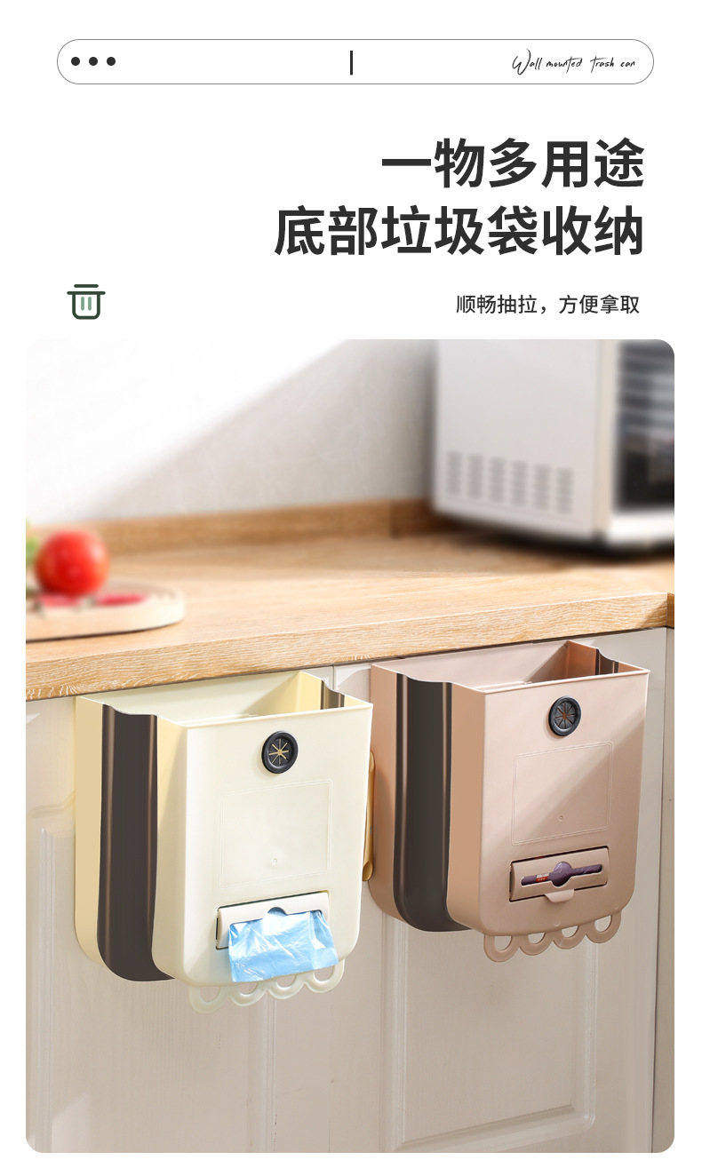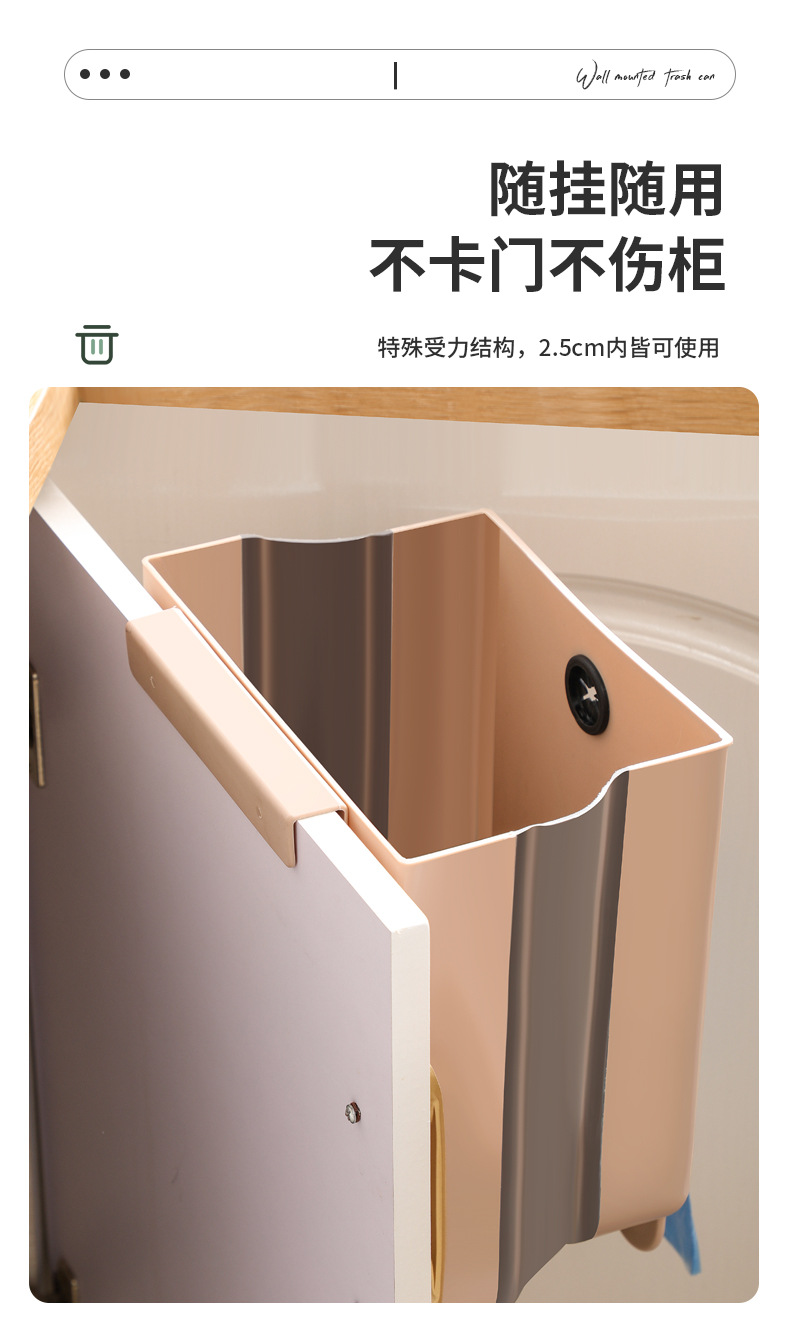 가정용 접이식 휴지통 벽 교수형 무료 휴지통 빈 대형 주방 저장 배럴 높은 색상 가치 교수형 쓰레기통