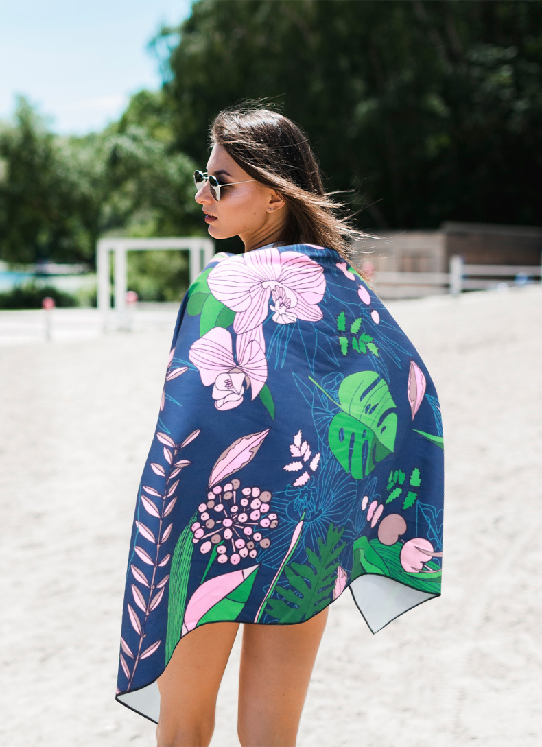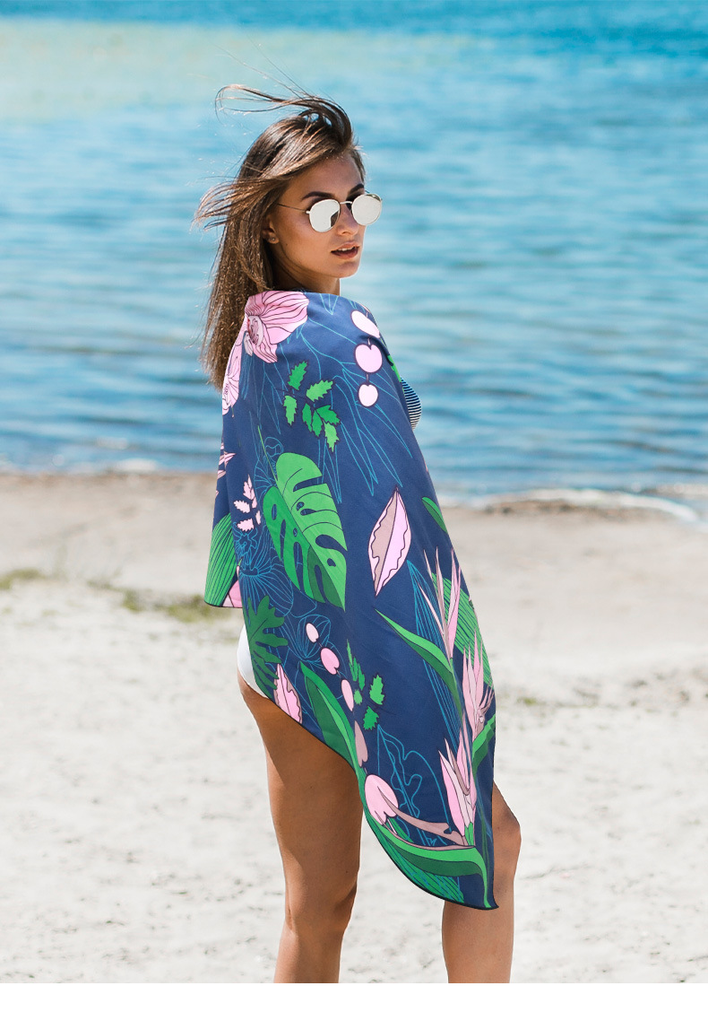 국경 간 뜨거운 판매 마이크로 화이버 빠른 건조 비치 타월 양면 벨벳 스포츠 타월 해변 수영 흡수성 목욕 타월 인쇄