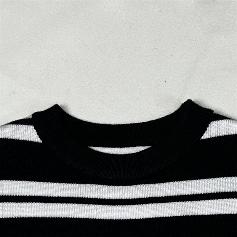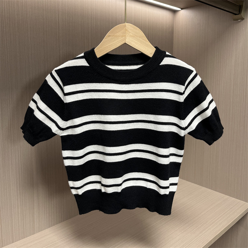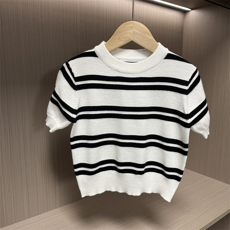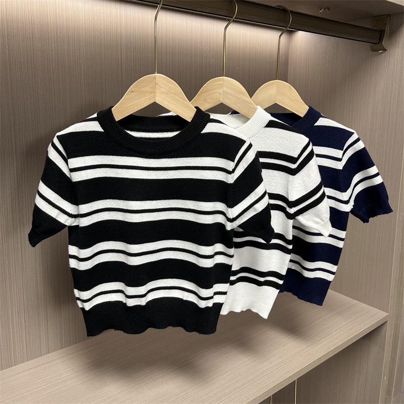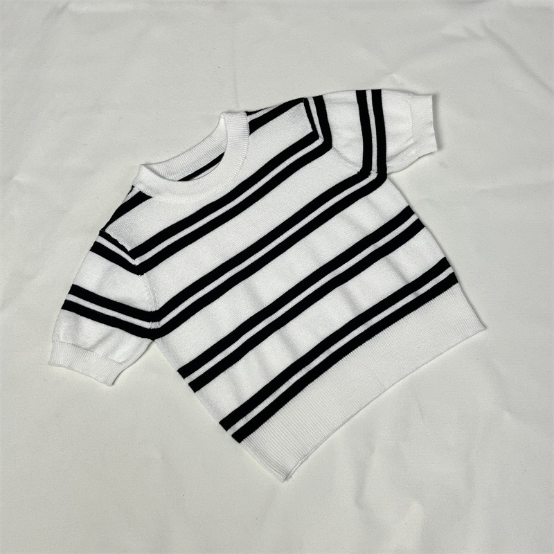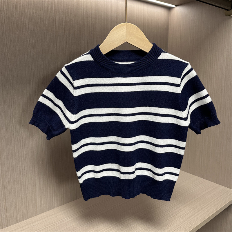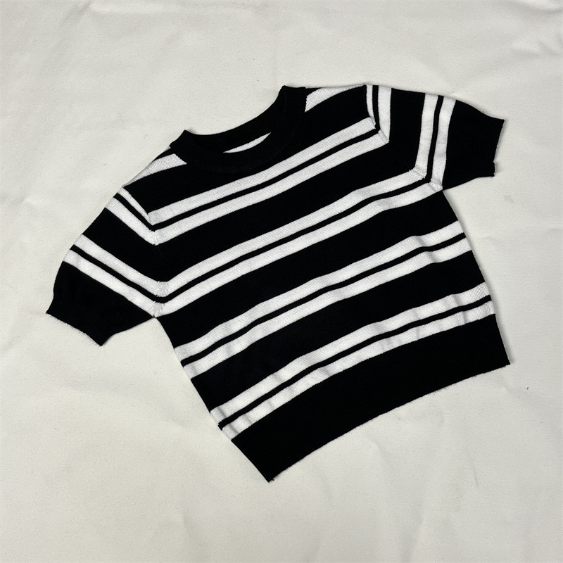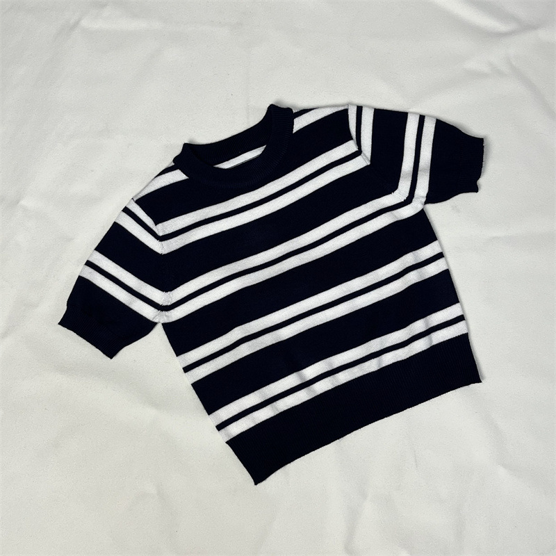 어린이 니트웨어 봄 새 줄무늬 반팔 풀오버 패션 올 매치 영국식 베이스 셔츠