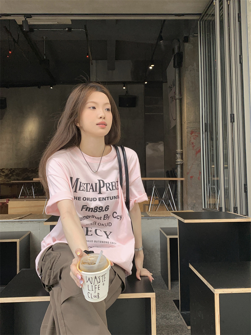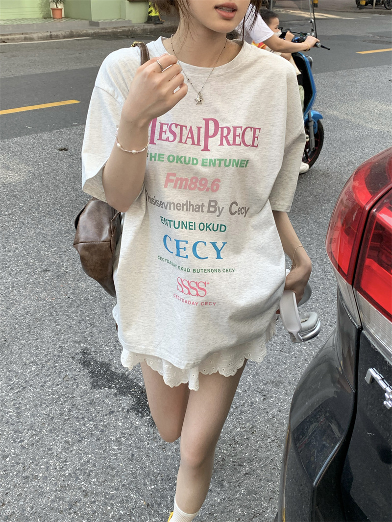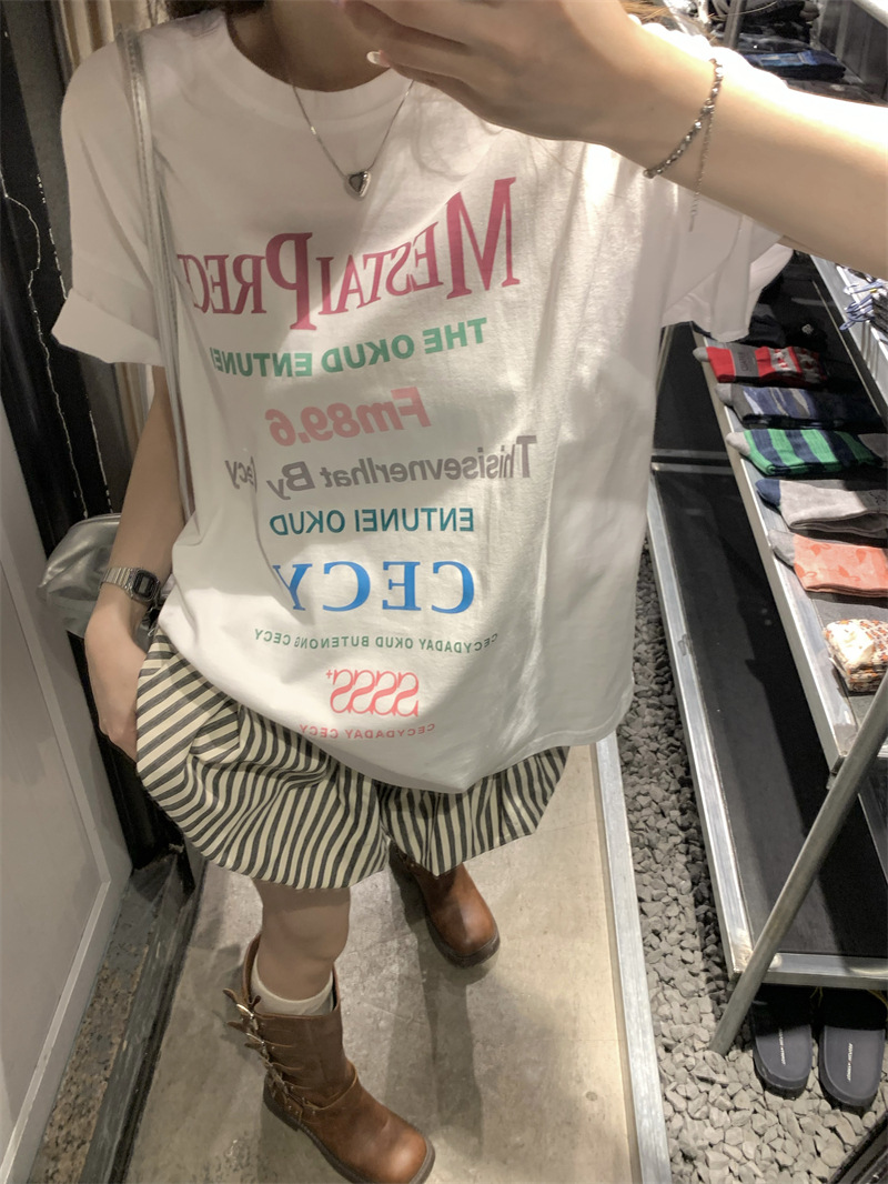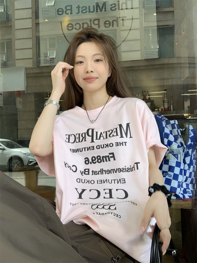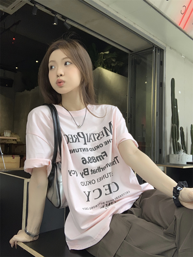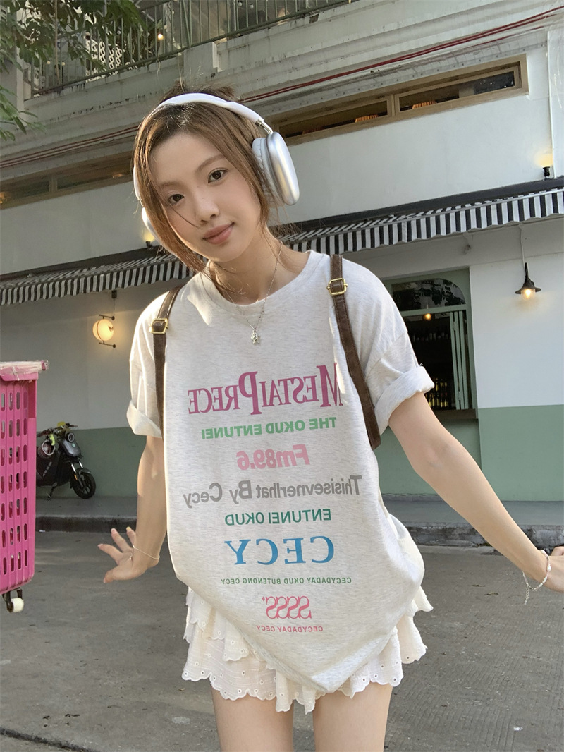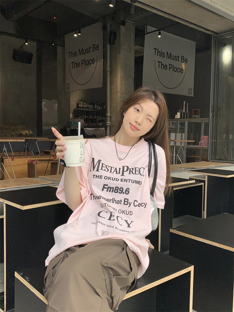 리얼 샷 ~ 미국의 게으른 컬러 글자 느슨한 반팔 티셔츠 여성용 캐주얼 조커 탑 62806스토어 가기