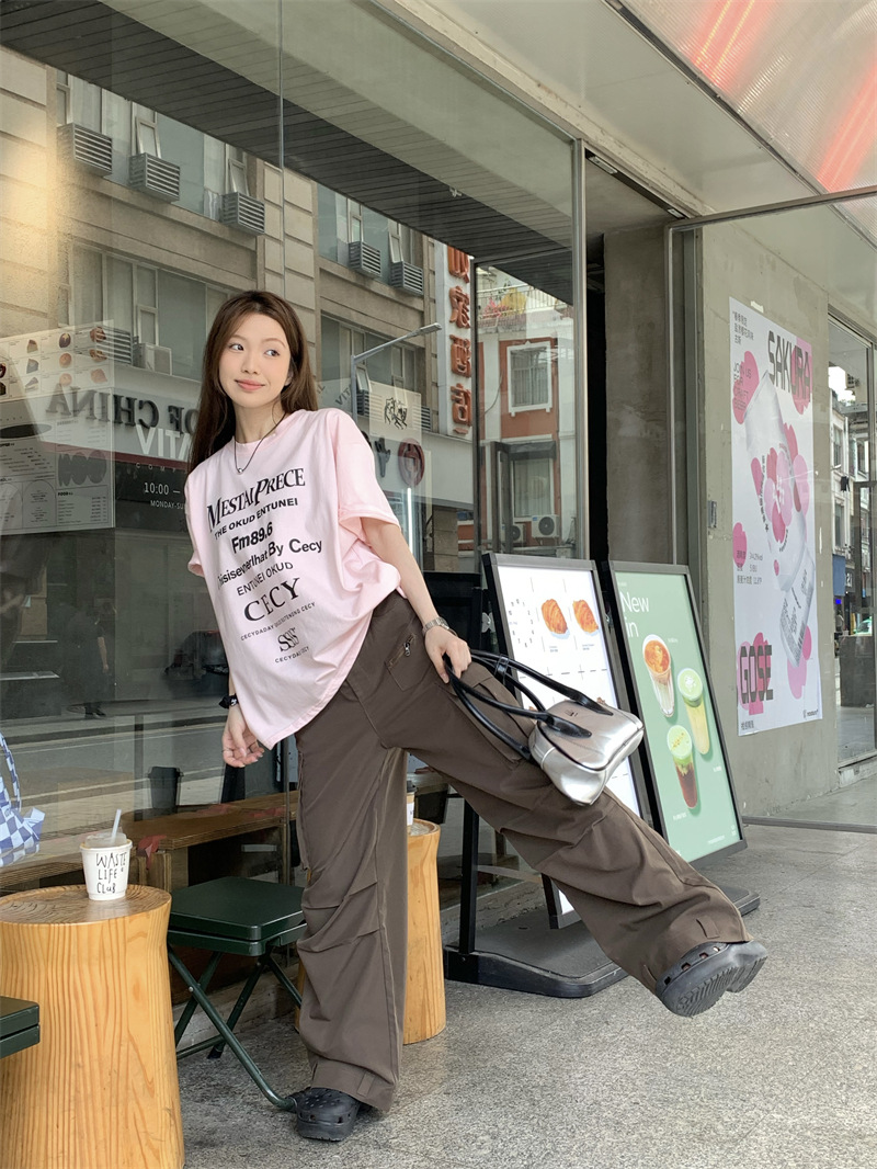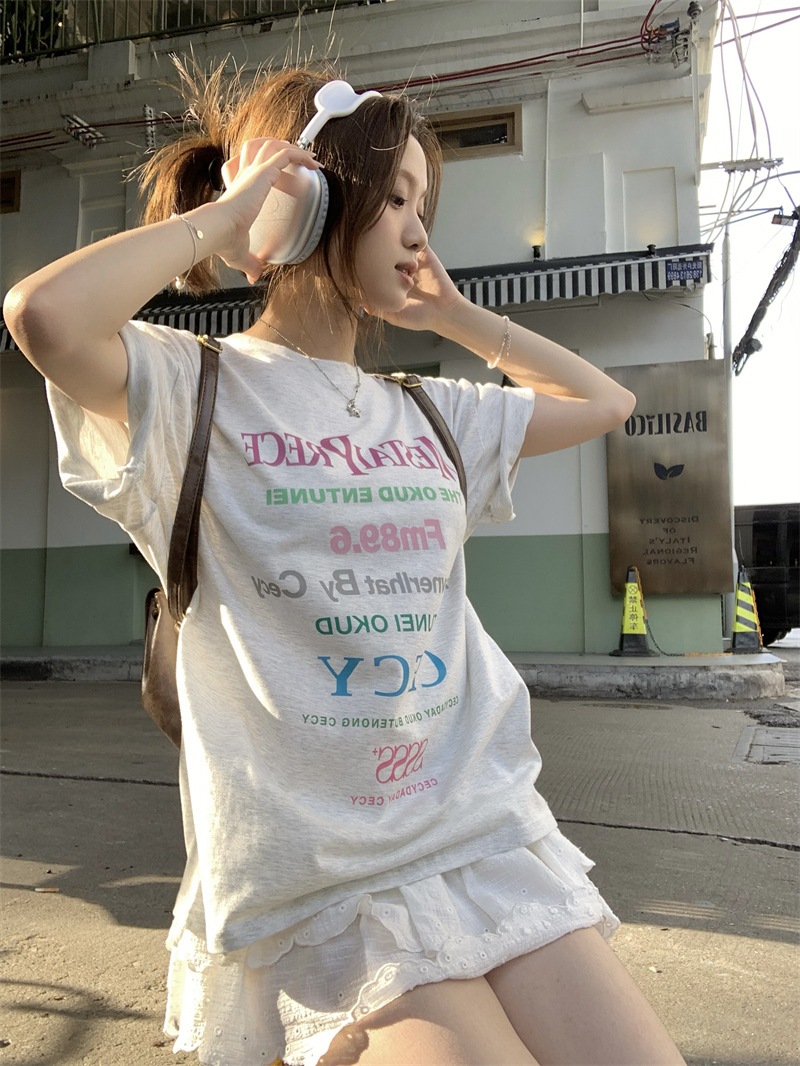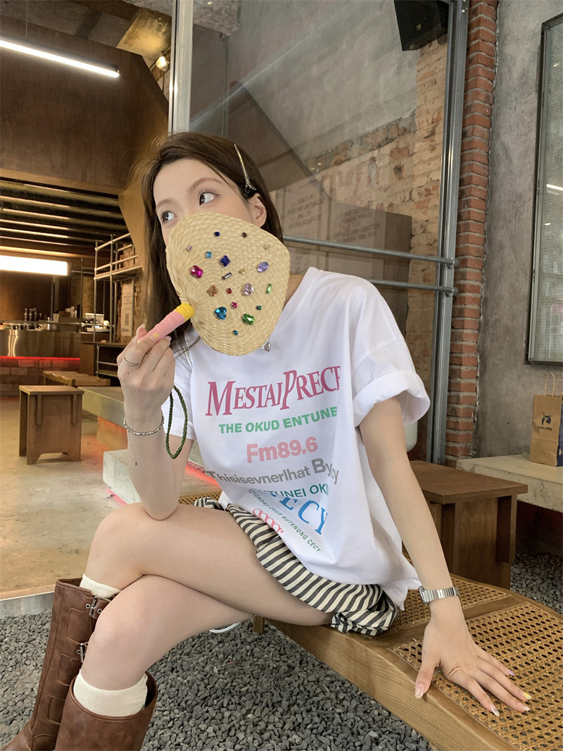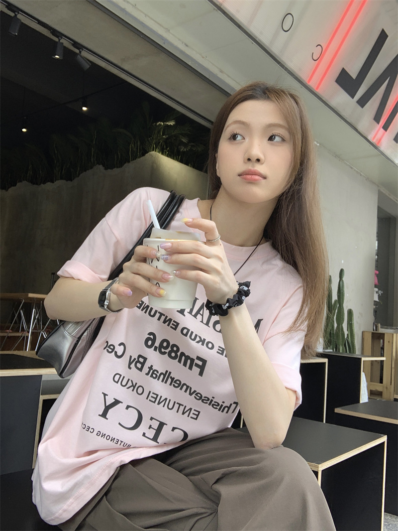 리얼 샷 ~ 미국의 게으른 컬러 글자 느슨한 반팔 티셔츠 여성용 캐주얼 조커 탑 62806