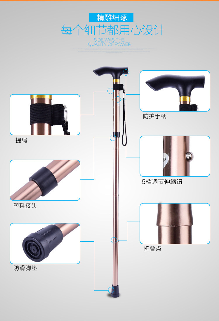 노인 야외 스포츠 용품을위한 알루미늄 합금 등반 스틱 접이식 휴대용 목발 비 슬립 무릎 보호 지팡이 등산 목발 목발스토어 가기