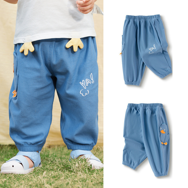 아기 바지 소년 소녀 느슨한 캐주얼 바지 여름 2024 새로운 어린이 착용 어린이 바지 얇은 안티 모기 트렌디 바지스토어 가기