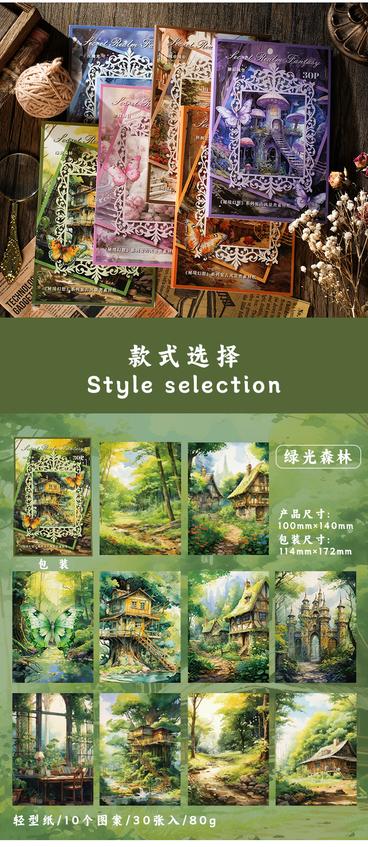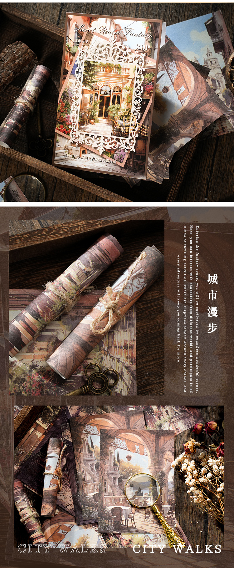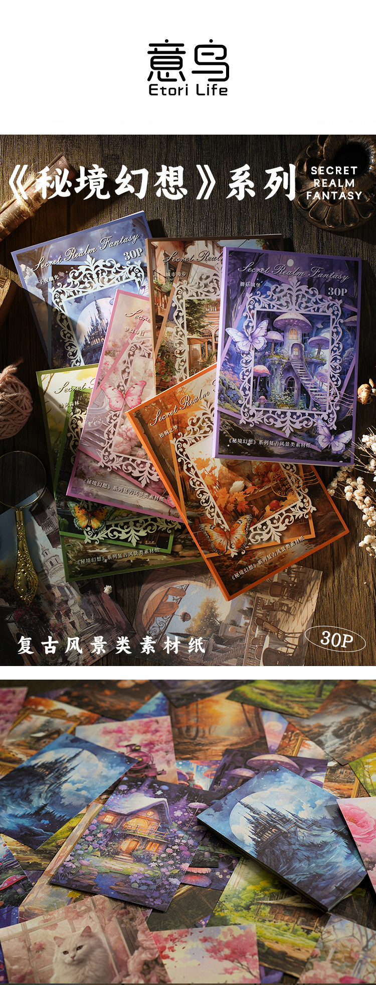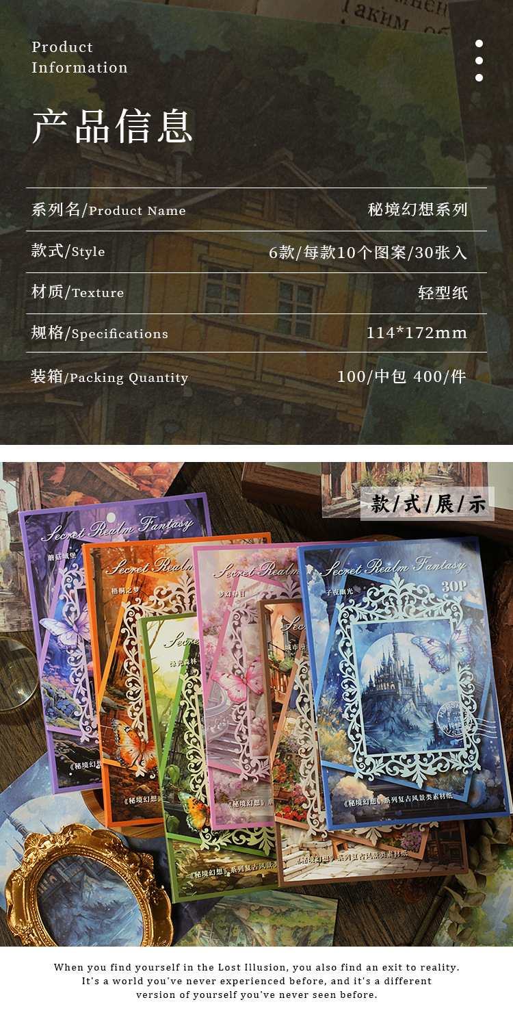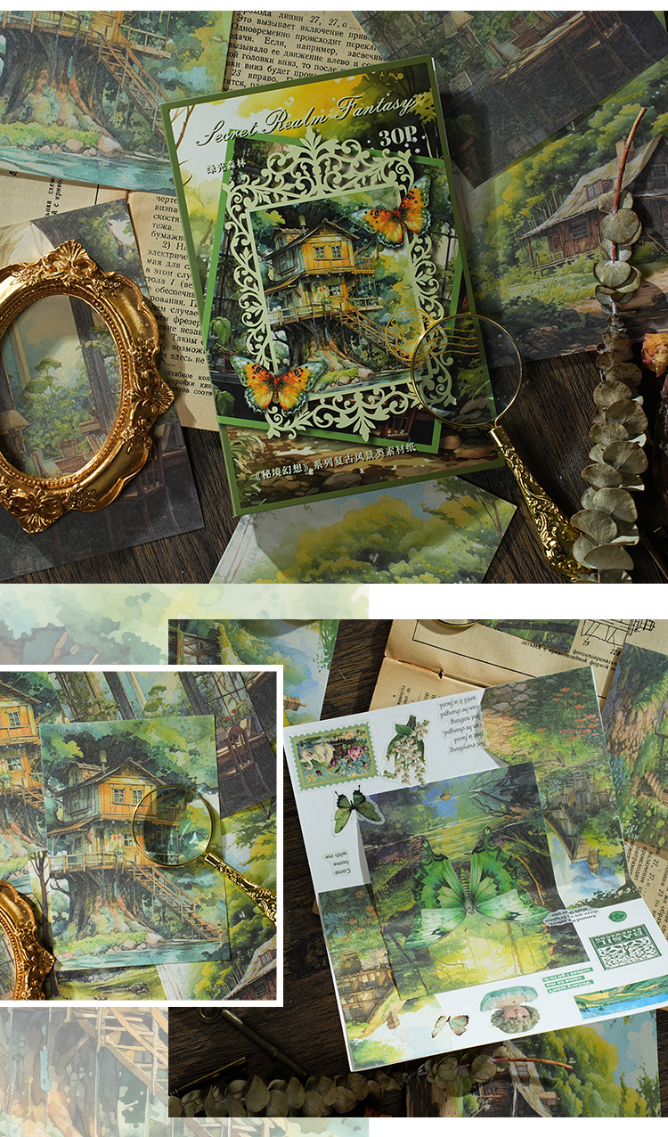 이탈리아 새 소재 종이 비밀 영역 판타지 시리즈 꿈 배경 손 계정 diy 장식 소재 스티커 30스토어 가기