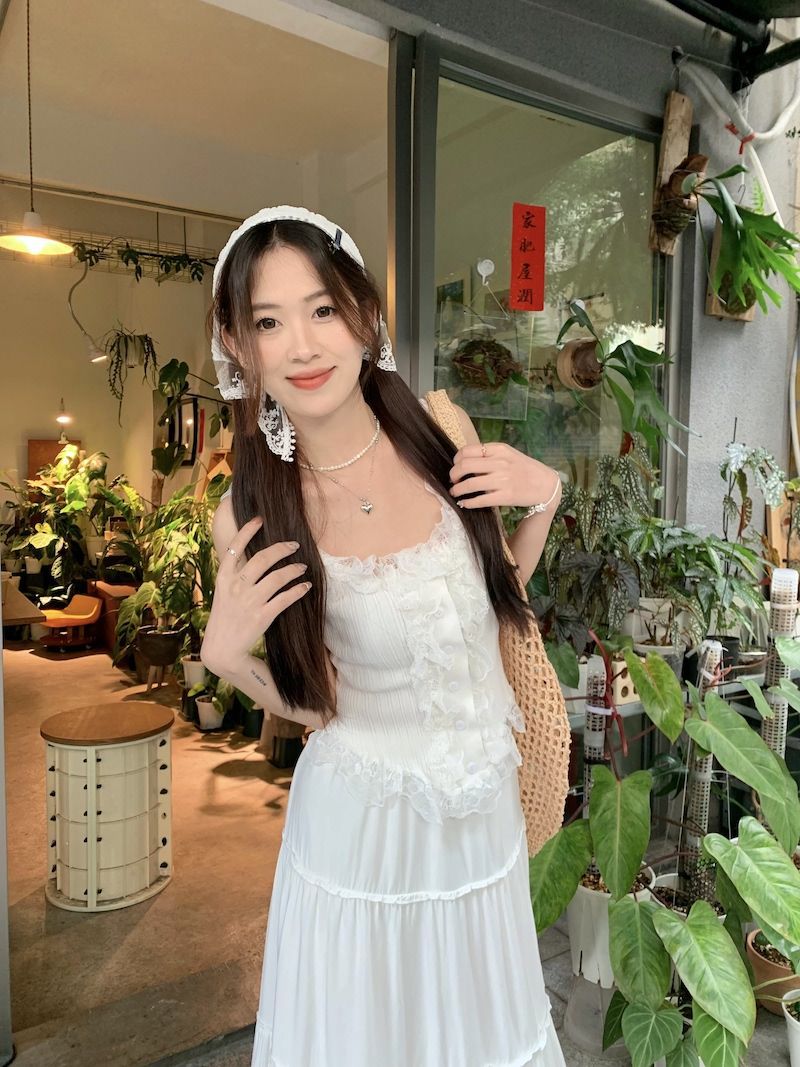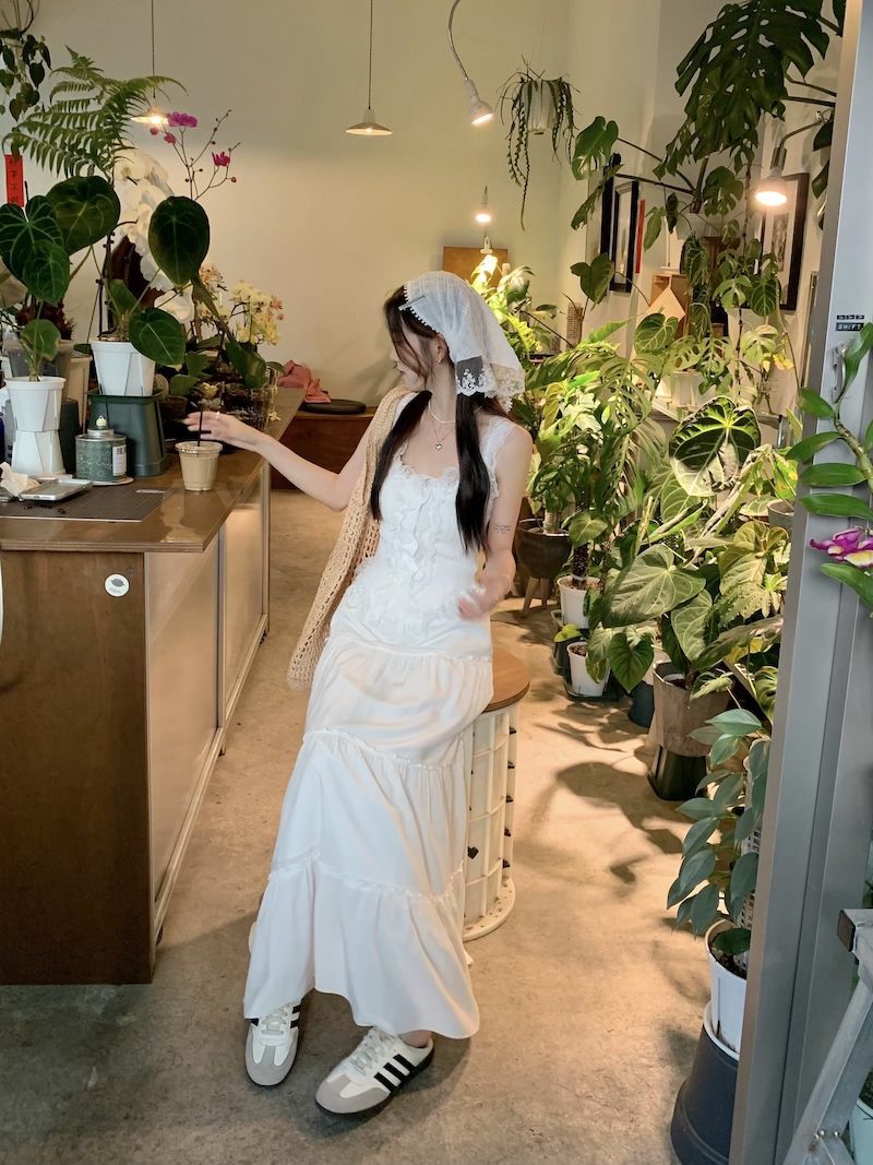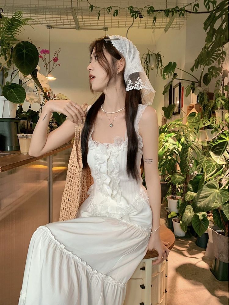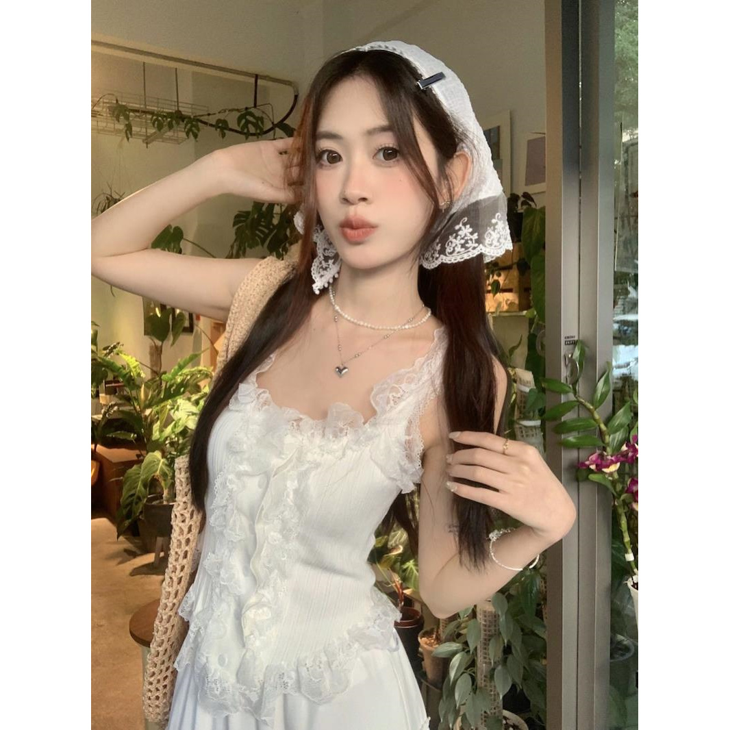 세트 여성의 여름 달콤하고 매운 레이스 카미솔 슈퍼 페어리 긴 원피스 화이트 스커트 투피스 부드러운 스타일스토어 가기