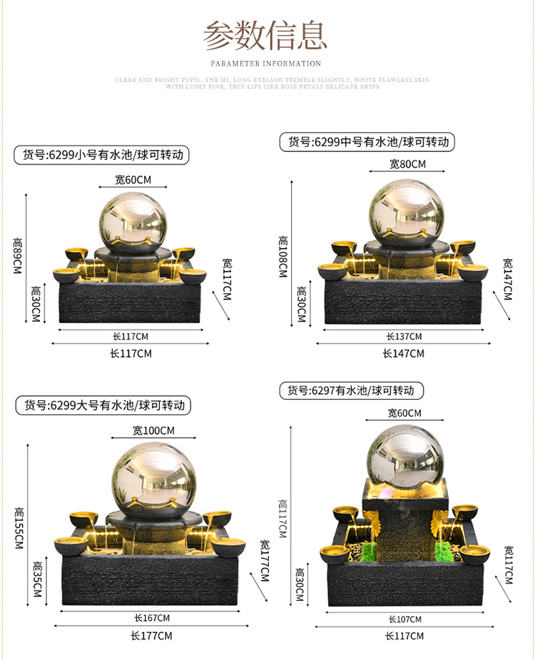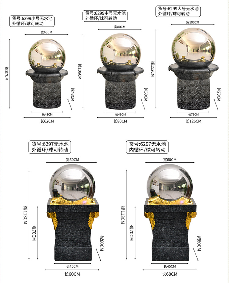 유럽 스타일의 공 물 분수 장식품 야외 실내 수경 장식 거실 사무실 루킹 바닥 풍경스토어 가기