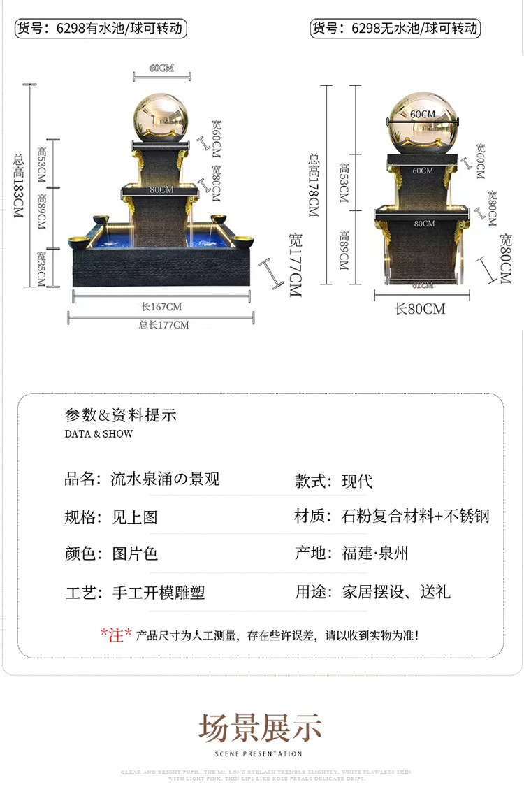 유럽 스타일의 공 물 분수 장식품 야외 실내 수경 장식 거실 사무실 루킹 바닥 풍경