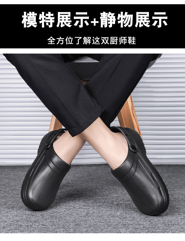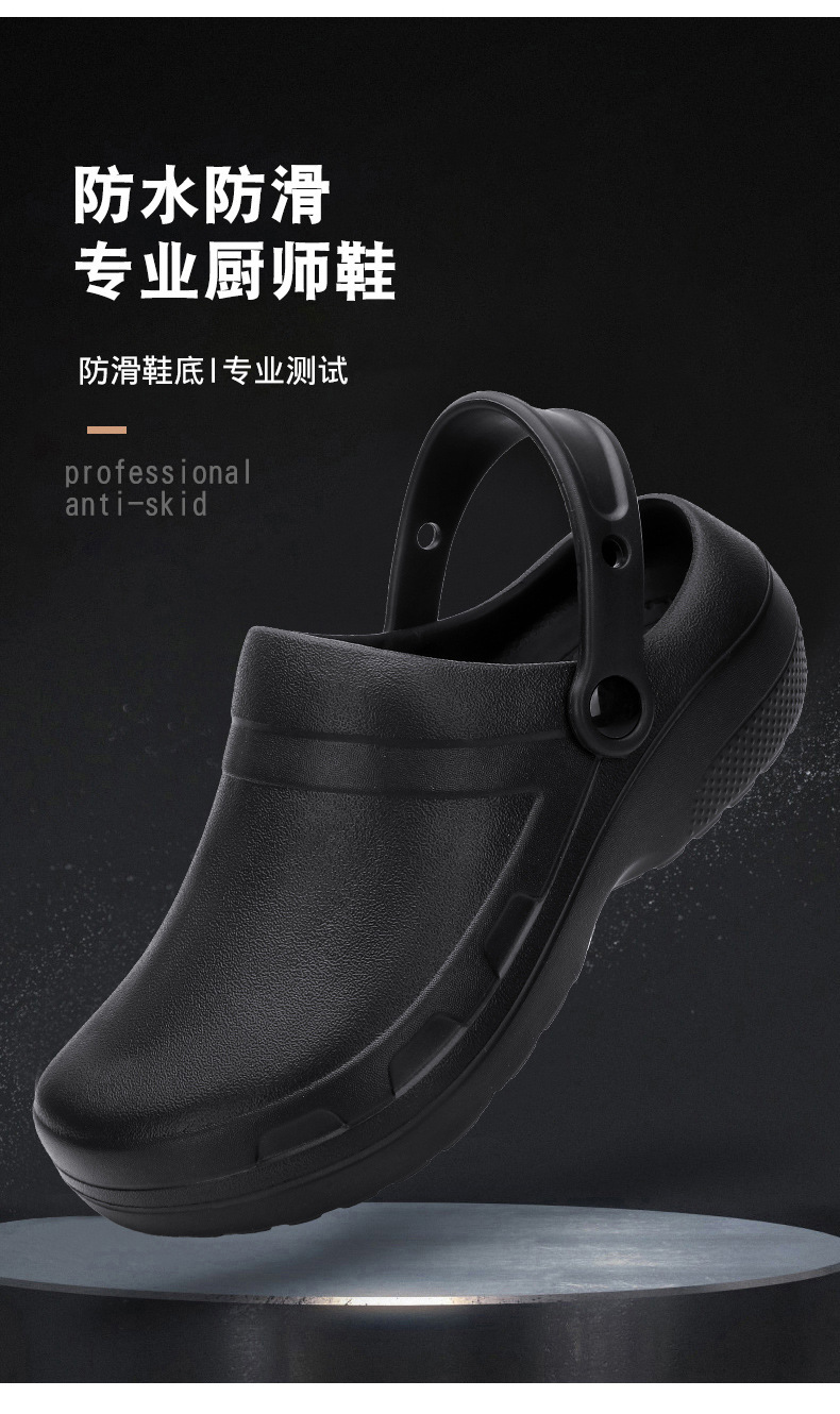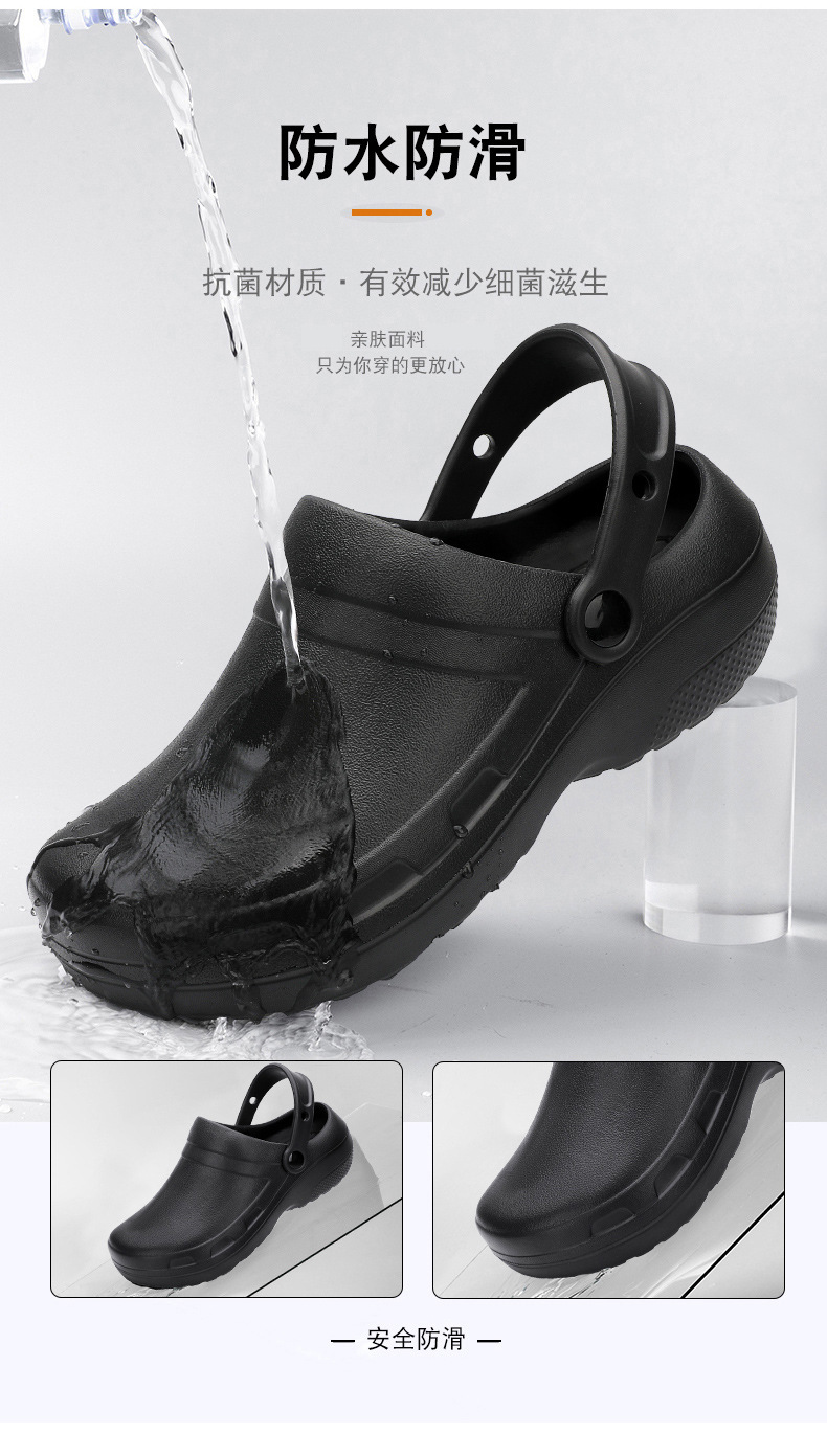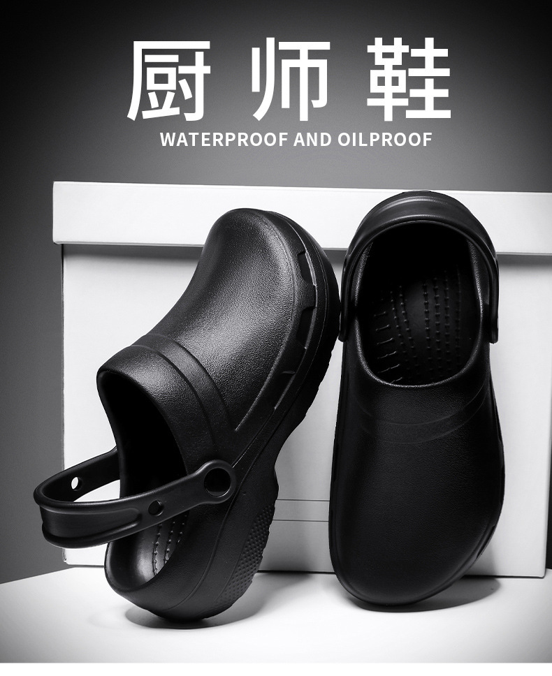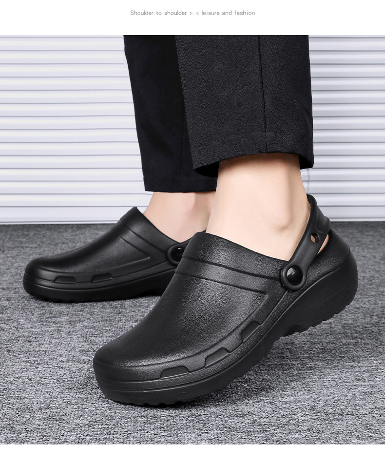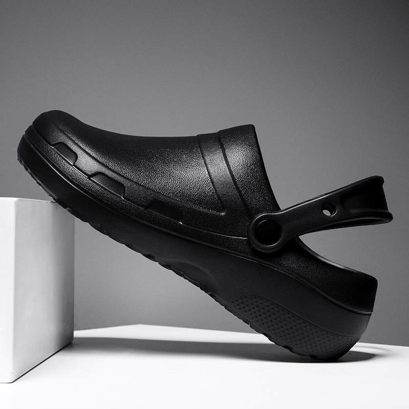 순수한 검은 슬리퍼 남성용 여름 통기성 주방 작업 방수 오일 방지 요리사 남성용 두꺼운 밑창 미끄럼 방지 작업 안전 신발스토어 가기