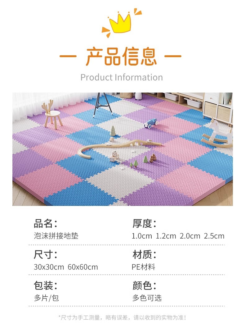 어린이용 두꺼운 폼 매트 아기 기어다니는 매트 거실 침실 대형 조립식 매트 기어다니는 매트 조립식 바닥 매트