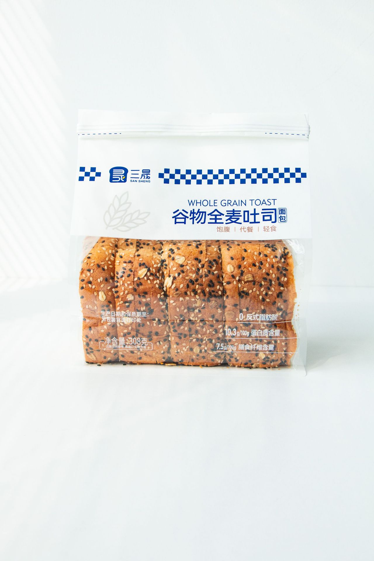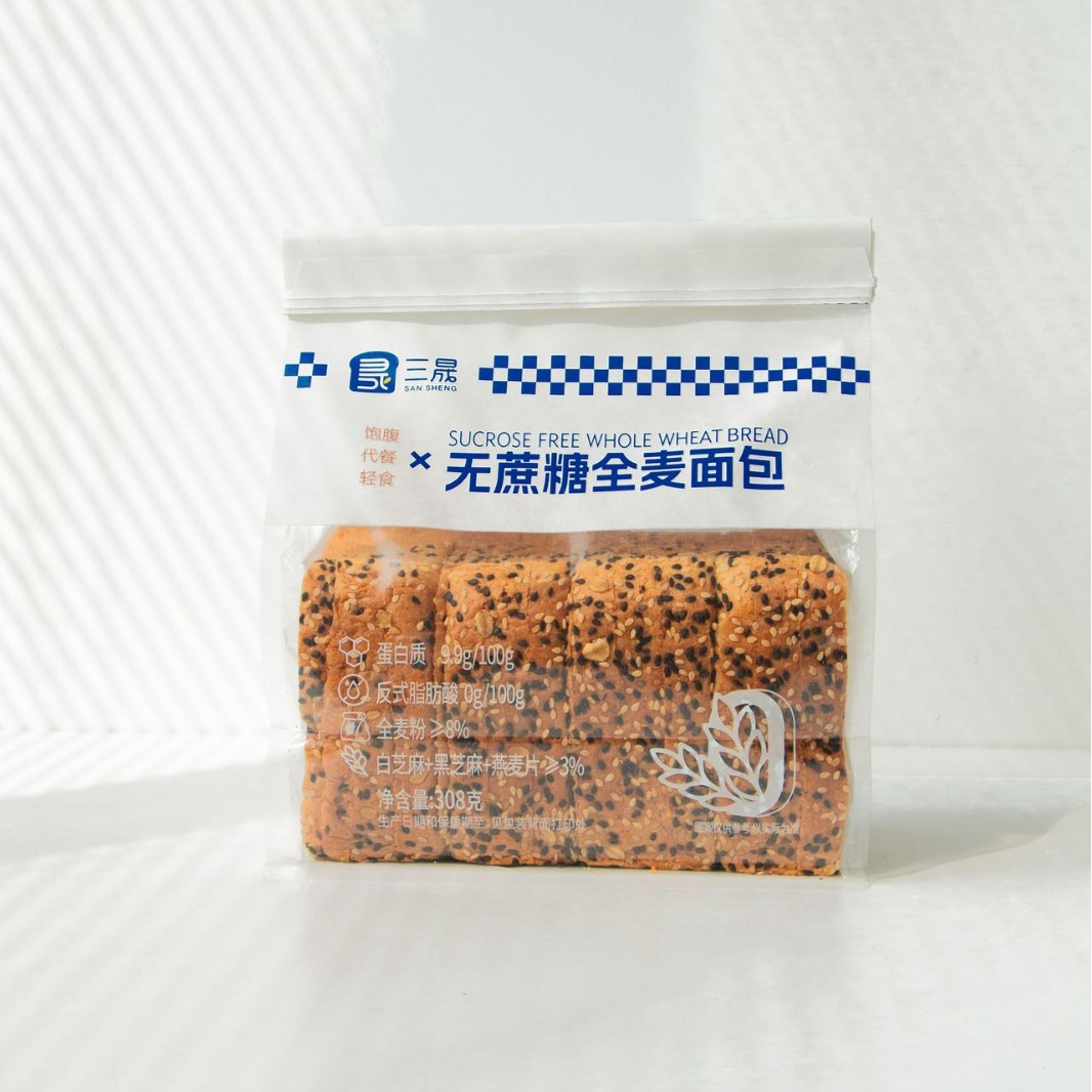 Sansheng 자당이없는 통밀 토스트 빵 308g 아침 식사 식사 전체 가벼운 음식 자당없는 슬라이스 전체 상자 도매스토어 가기