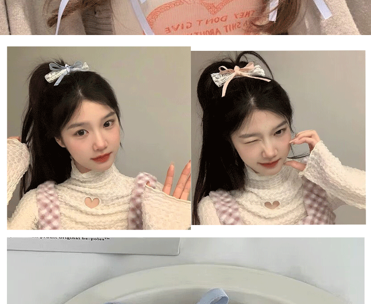 한국 달콤한 활 머리핀 여성의 귀여운 리본 머리핀 인 사이드 클립 소녀의 하트 레이스 덕빌 클립