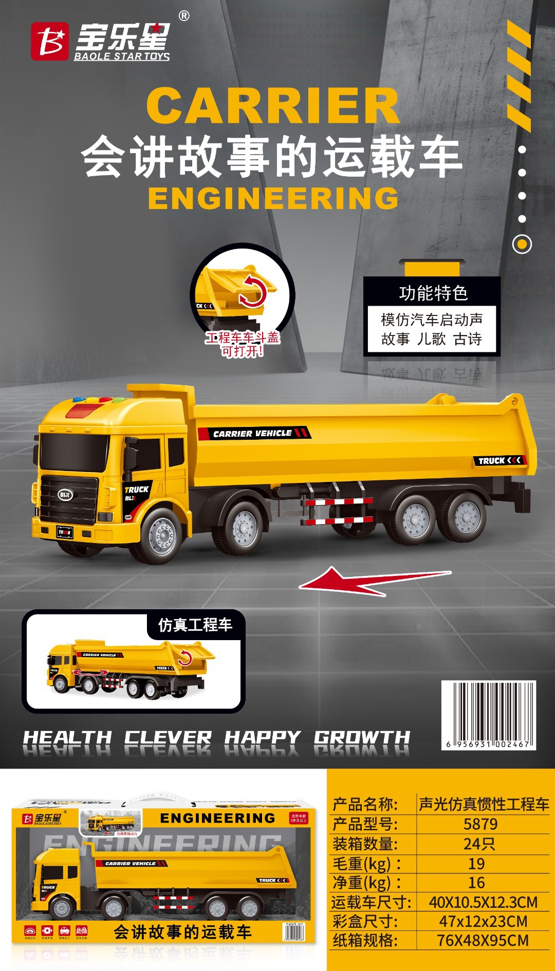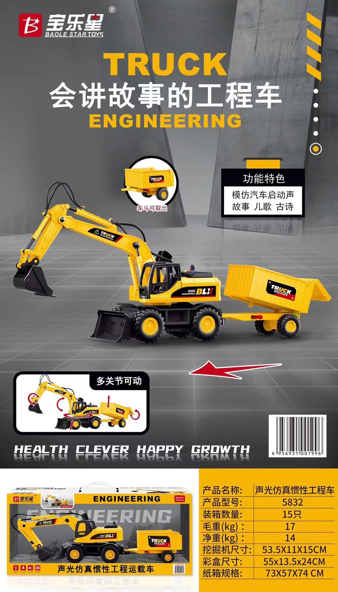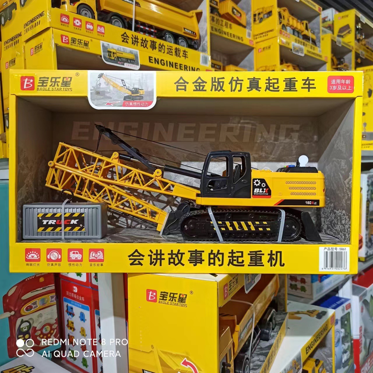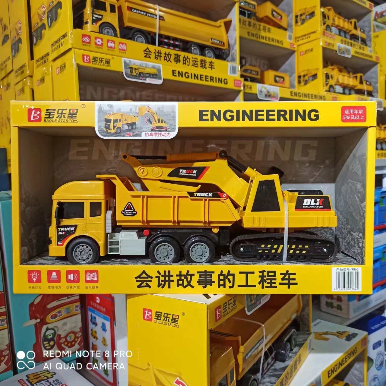 Baolexing 스토리 텔링 음악 관성 시뮬레이션 조기 교육 엔지니어링 차량 굴삭기 크레인 우드 차량 트레일러 모델스토어 가기